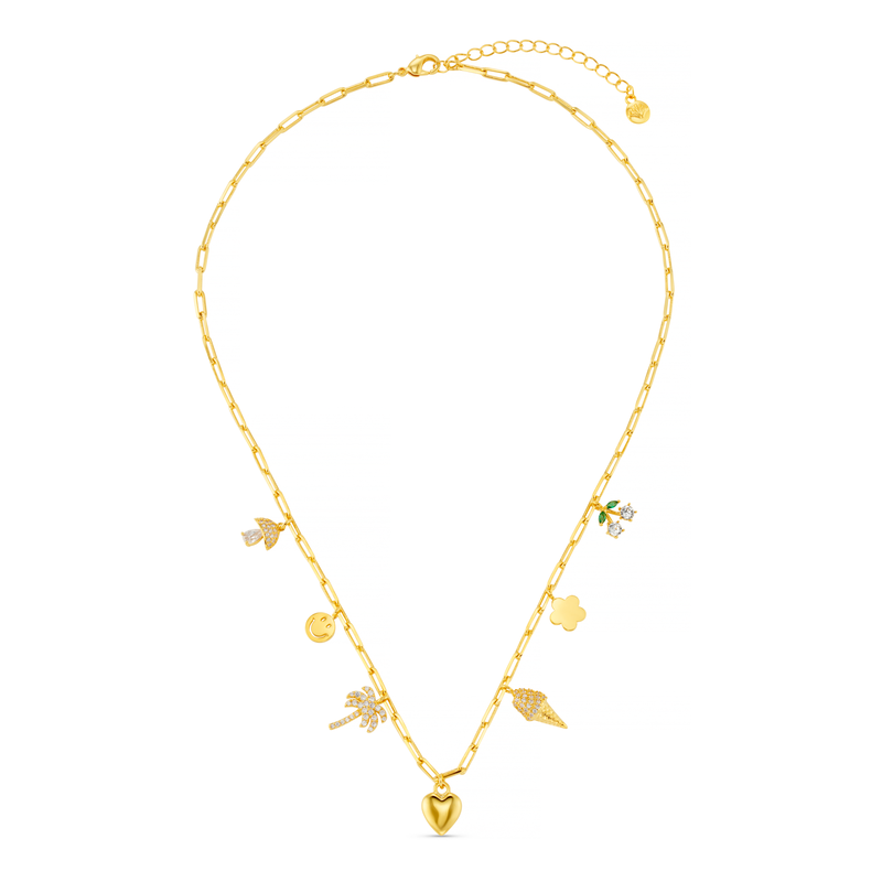 Mixed Eclectic Pave Charm Necklace Pale Gold