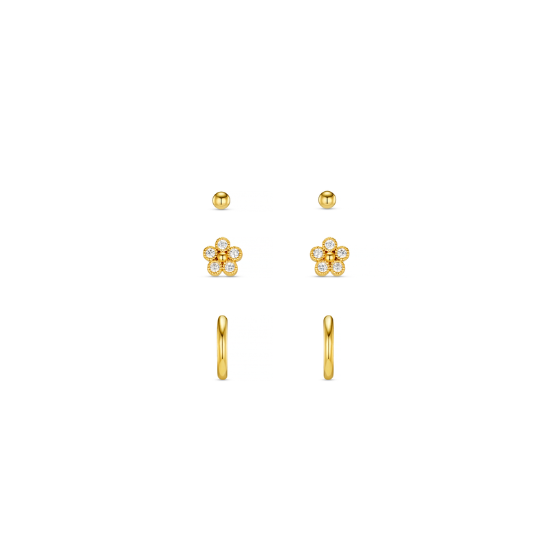 Crystal Flower & Micro Hoop Earring Pack Pale Gold