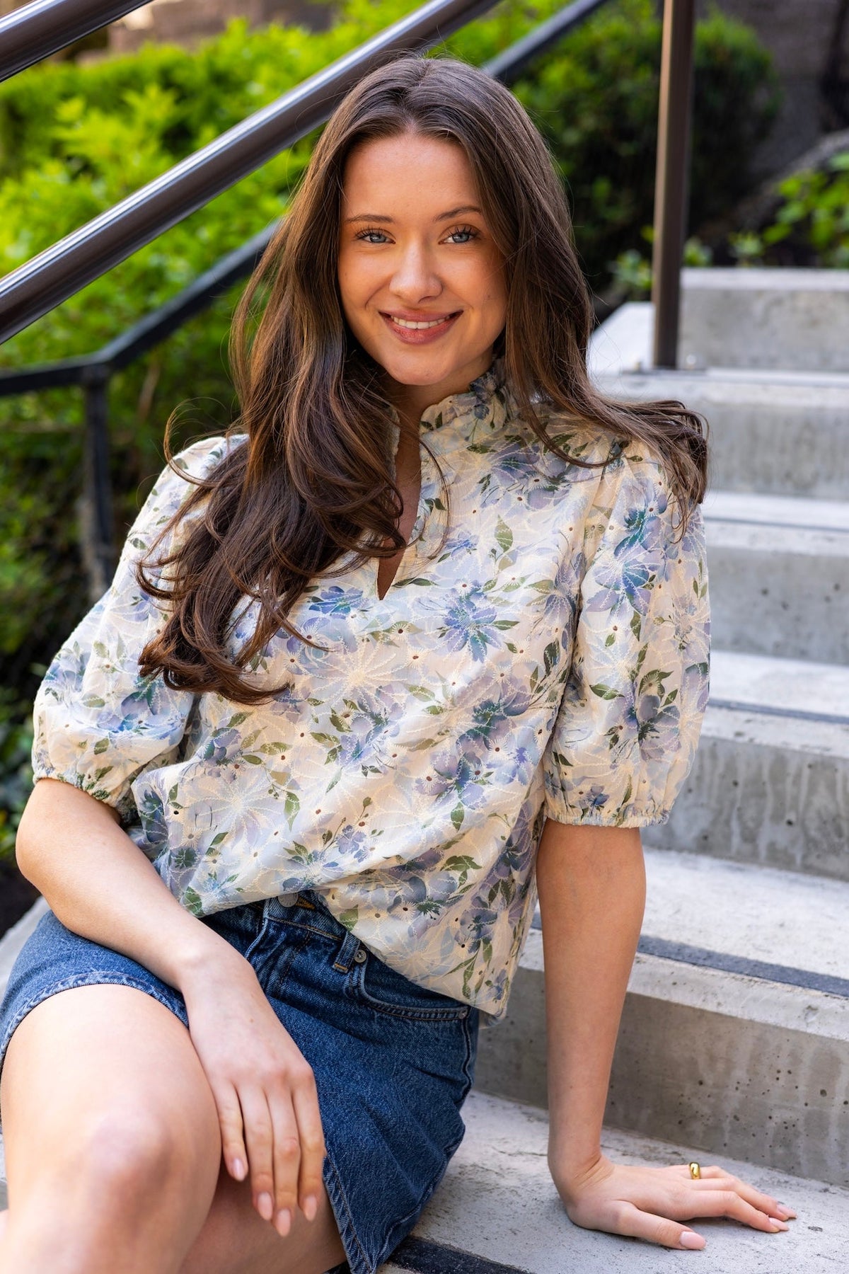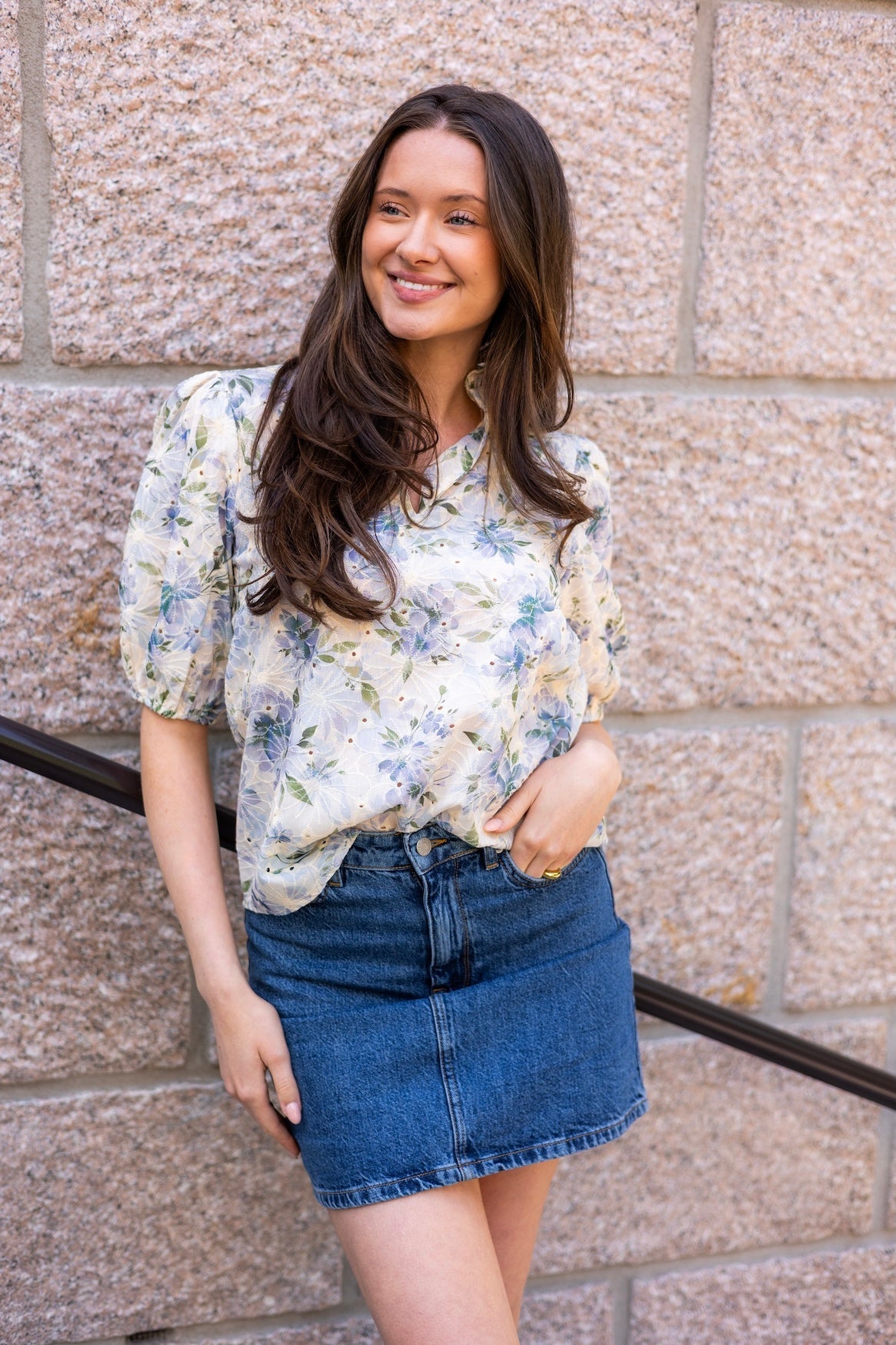 Grete S/S Blouse White/Blue | Skjorter og bluser | Smuk - Dameklær på nett