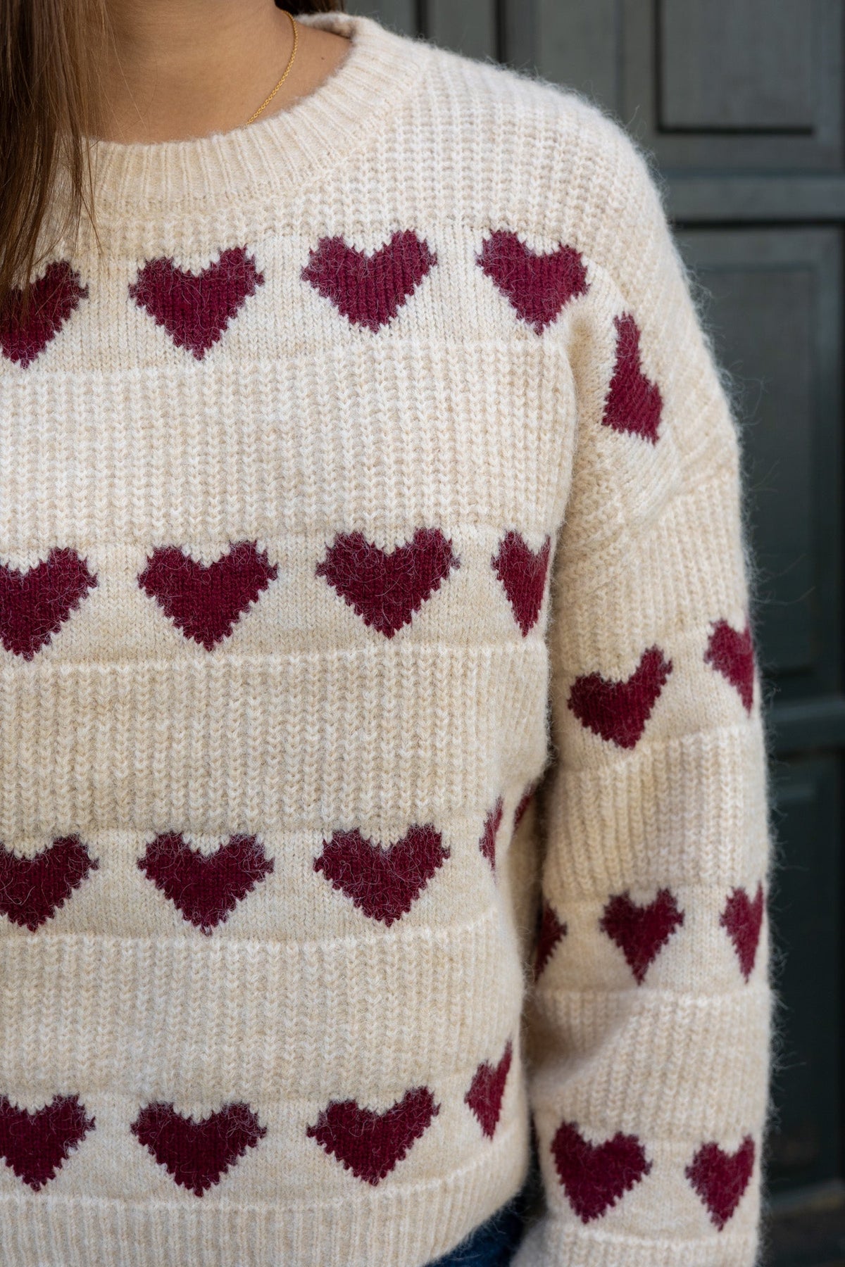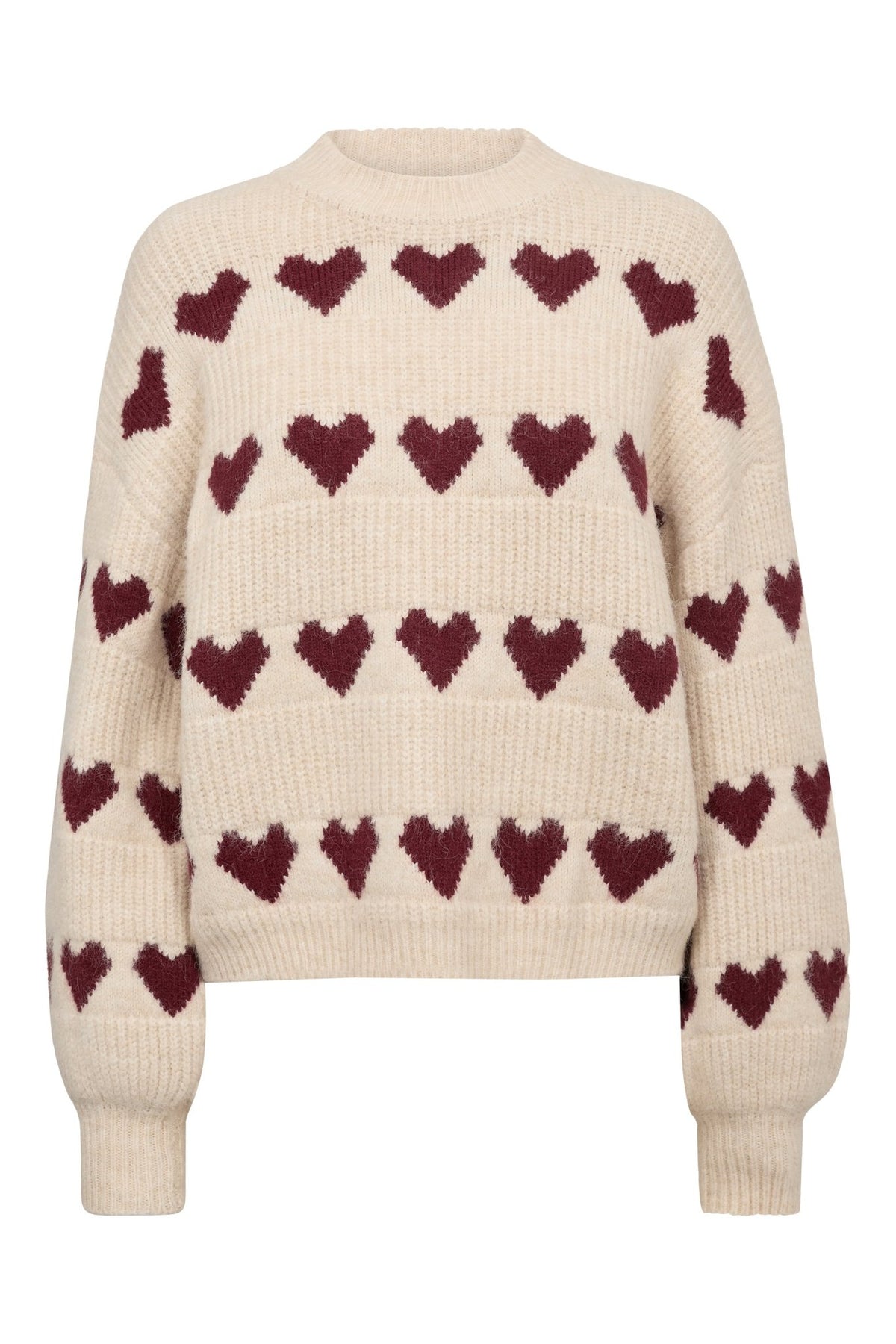 Heart Knit Pullover Off White/Bordeaux | Genser | Smuk - Dameklær på nett