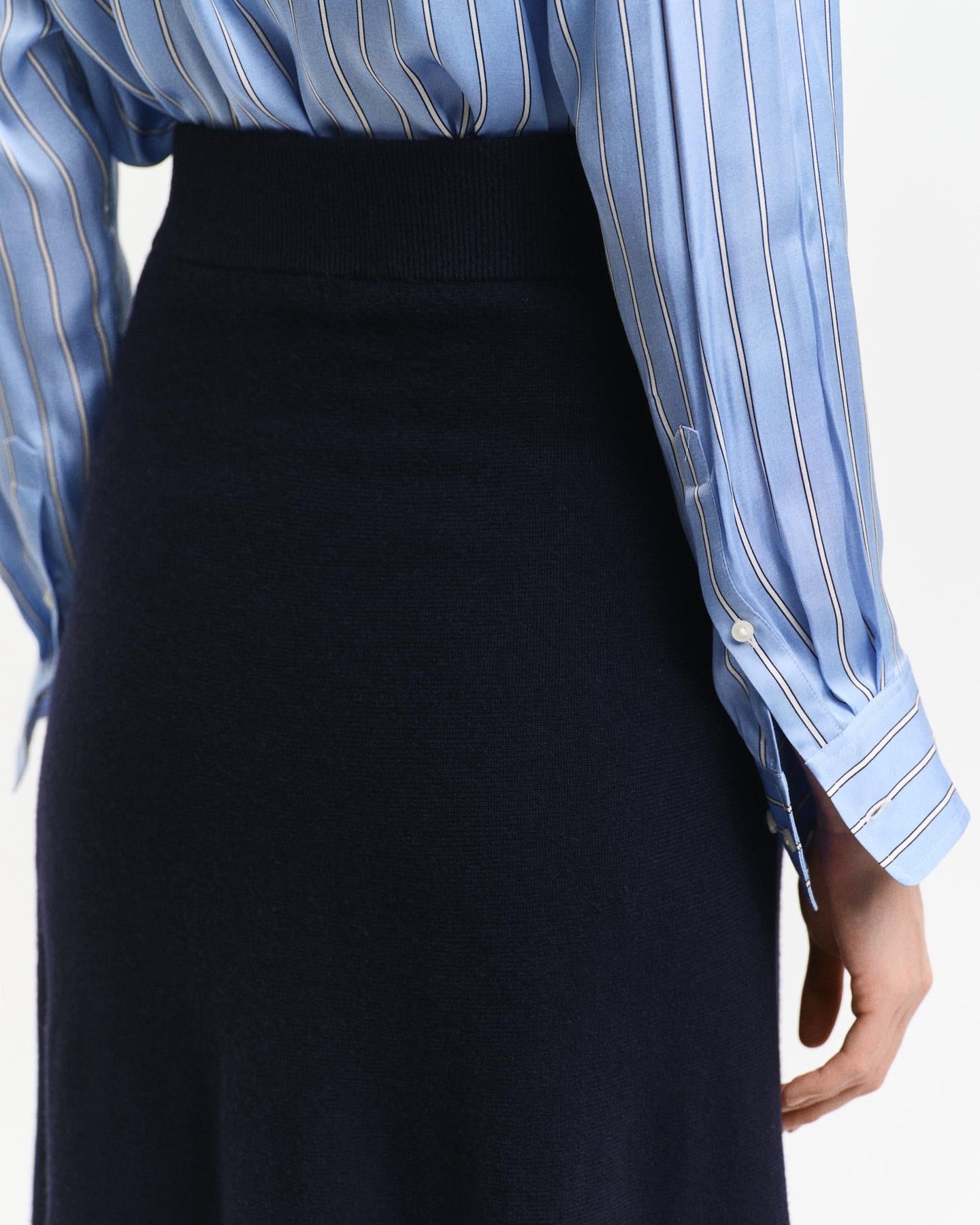 Superfine Lambswool Skirt Evening Blue fra GANT er det perfekte skjørtet for kaldere måneder. Dette skjørtet, laget av superfint italiensk lammeull, har en A-linje silhuett og knelang lengde, noe som gir en komfortabel og stilig passform. Superfine Lambswool Skirt Evening Blue har en ribbet linning for ekstra detalj. Det er i normal størrelse, midi lengde, og bør vaskes med ullvaskemiddel, sammen med lignende farger, og strykes på vrangen. Det bør også formes mens det er vått.
