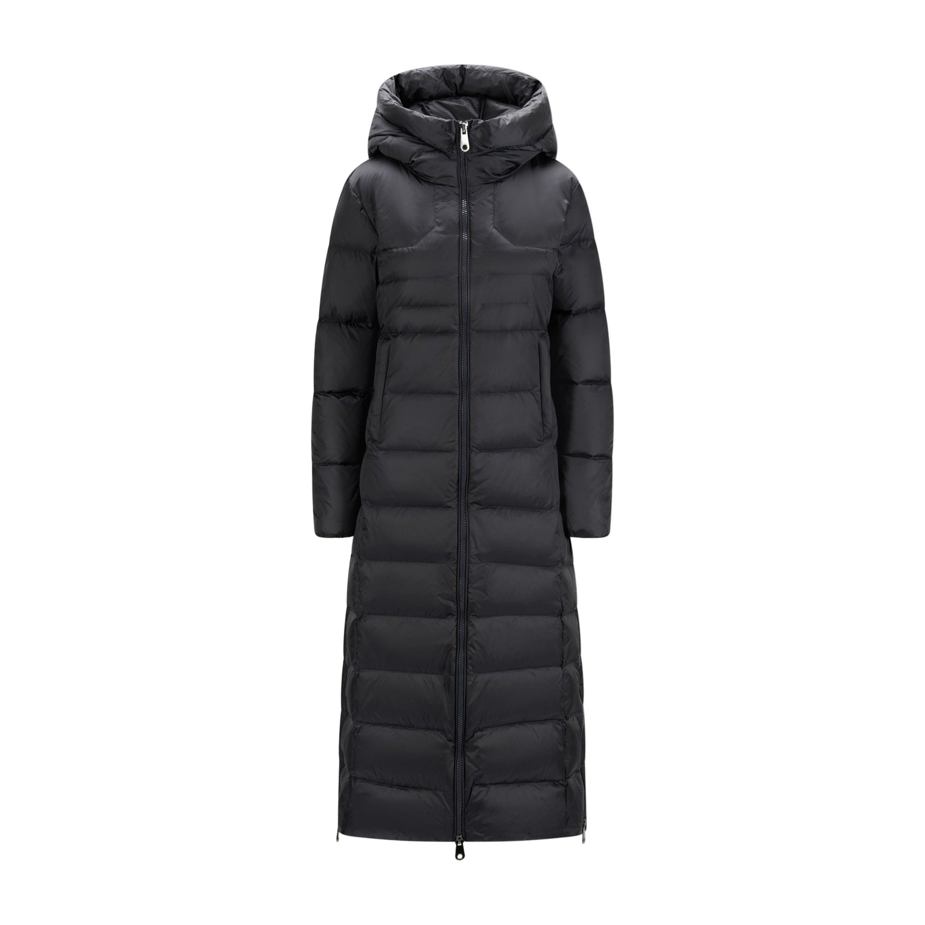 Camille Long Navy, en elegant og lang dunjakke i fargen navy. Camille Long Navy holder deg varm fra topp til tå gjennom hele vinteren. Jakken har en slim fit passform og en feminin silhuett som gir et sofistikert og moderne uttrykk. Med lange, praktiske glidelåser i siden, gir jakken ekstra bevegelighet og komfort. Vannavstøtende egenskaper sørger for at du holder deg tørr, selv på de mest snørike dagene. Jakken er laget av 100% nylon og fylt med 90% andedun og 10% fjær, noe som gjør den både varm og lett. Passer til normal til smal kroppsbygning.