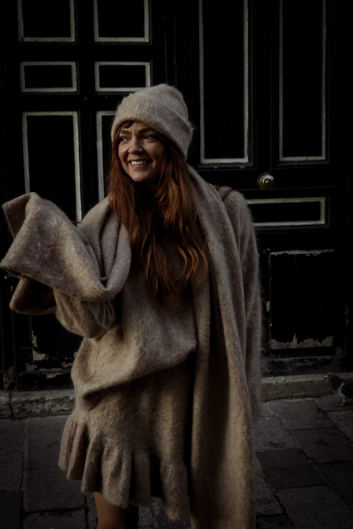 Boxy Beanie i Beige Melange fra Confettibird er det ultimate tilbehøret på kalde dager. Boxy Beanie er strikket i chunky kvalitet for varme, mykhet og en perfekt avslappet passform. Den fullfører ethvert vinterantrekk og holder deg varm samtidig som den gir et moderne uttrykk. Style den gjerne med matchende strikk for en helhetlig Confettibird-look.