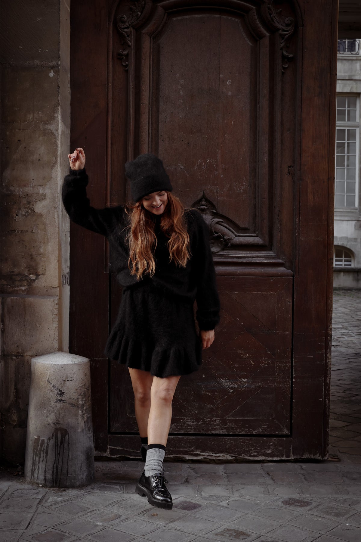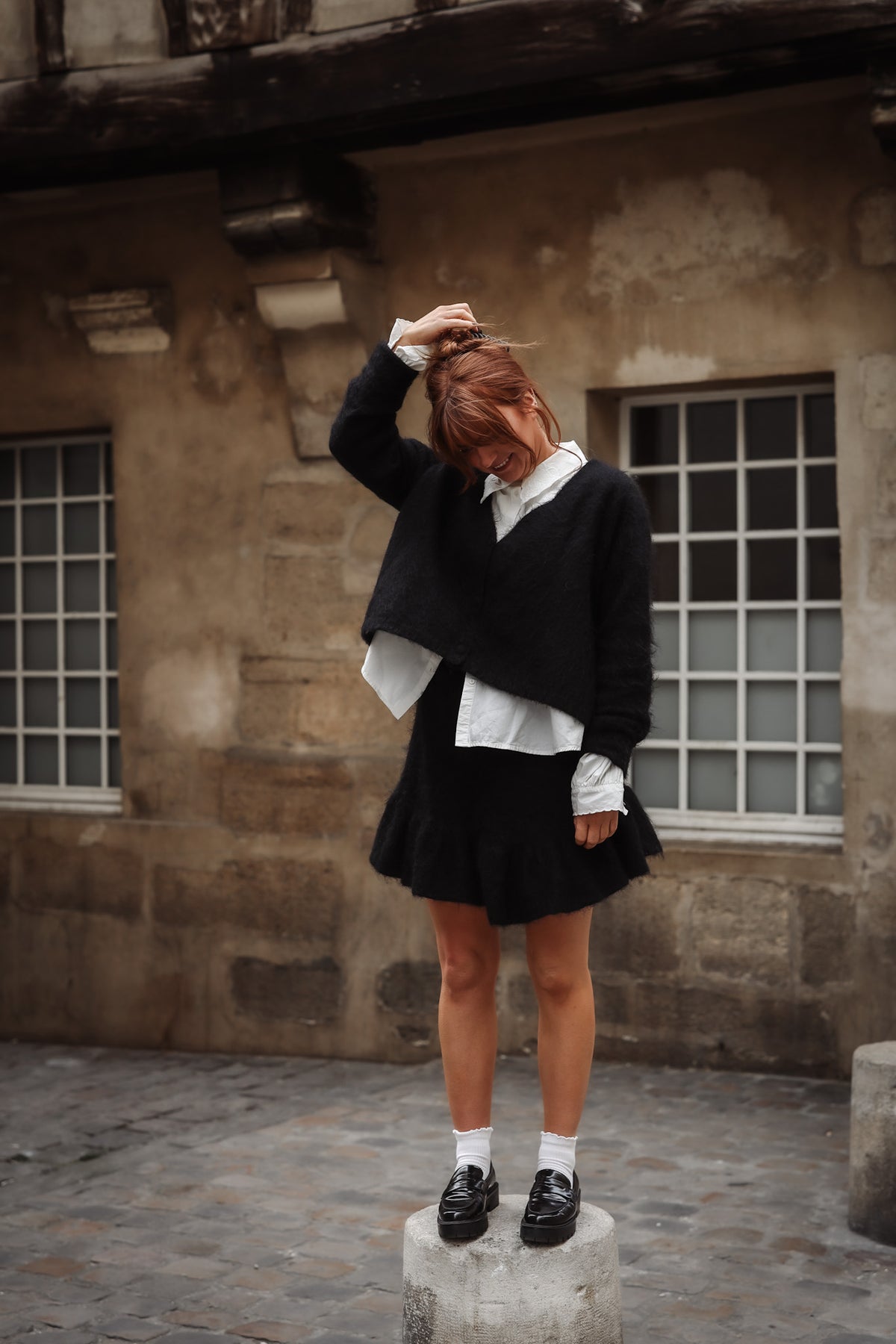 Knit Frill Skirt Black fra Confettibird er lekent og behagelig, og kombinerer komfort med sjarm. Knit Frill Skirt er laget i myk strikkekvalitet med en flatterende, elastisk midje, en moderne lengde og et feminint preg med den delikate volang-kanten. Bruk det sammen med chunky strikk for en helhetlig look, eller style det med boots for et moderne og uanstrengt antrekk.