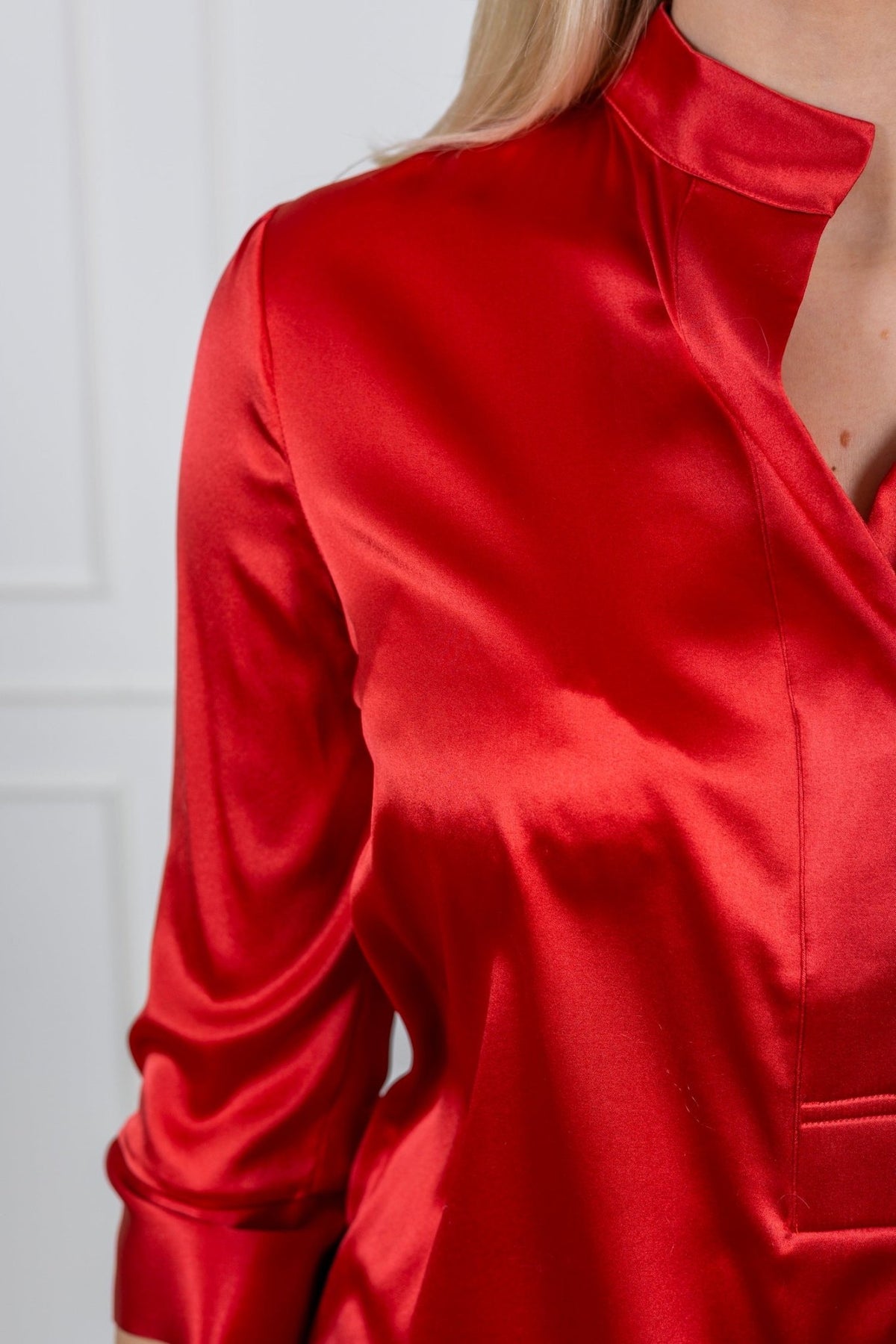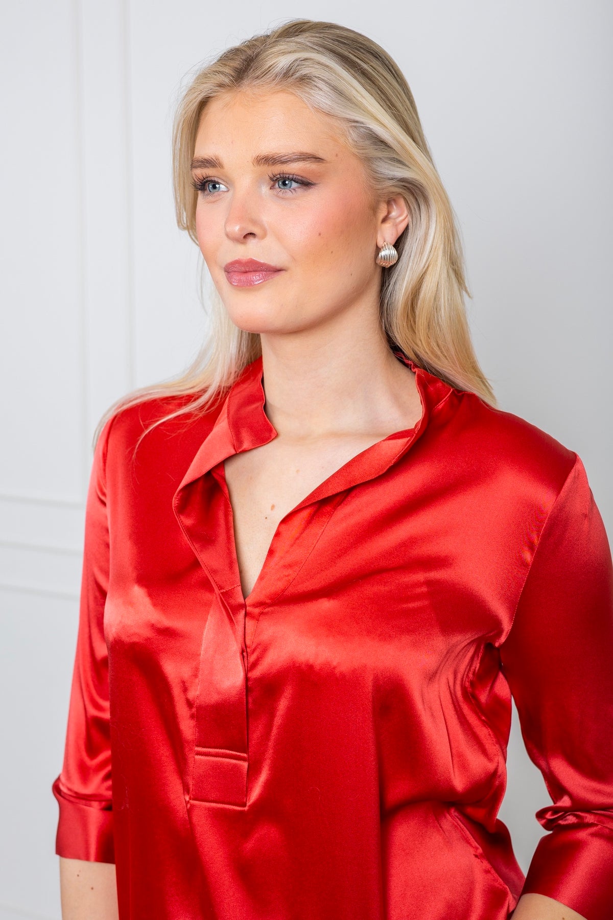 Danittadea Amaranth er en elegant bluse fra Dea Kudibal, kjent for sin unike stil og høy kvalitet. Denne blusen kommer i den rike fargen amaranth, og har en ståkrage som gir et sofistikert utseende. Danittadea Amaranth er laget av 90% silke og 10% elastan, noe som gir en luksuriøs følelse og komfort. Perfekt for både hverdagsbruk og spesielle anledninger.
