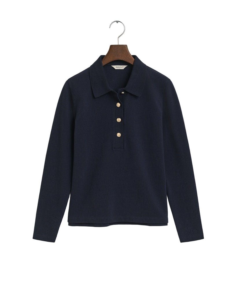 Long Sleeve Piqué Polo Shirt Evening Blue | Genser | Smuk - Dameklær på nett