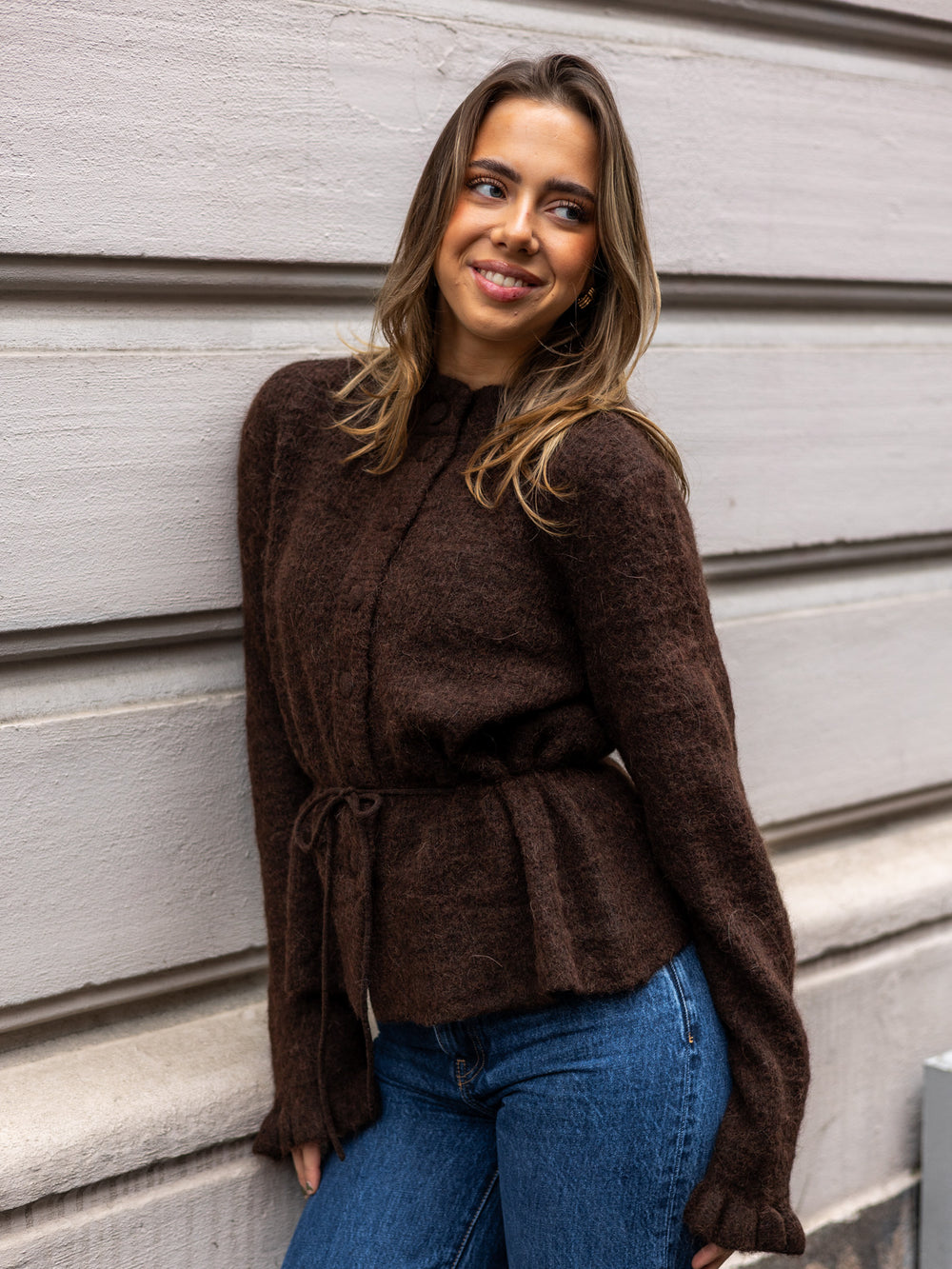 Gabella Ls Knit Belt Cardigan Fig Melange