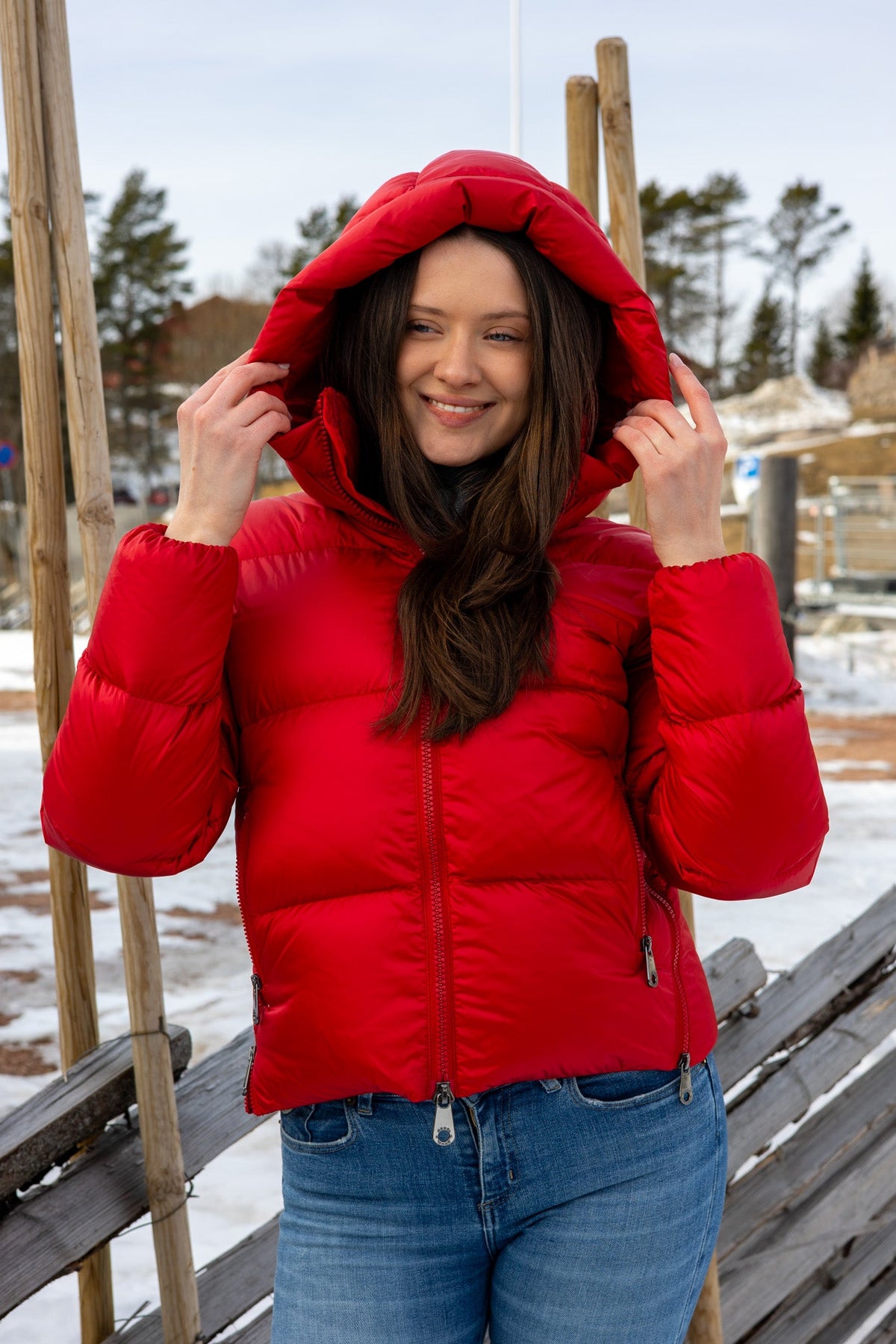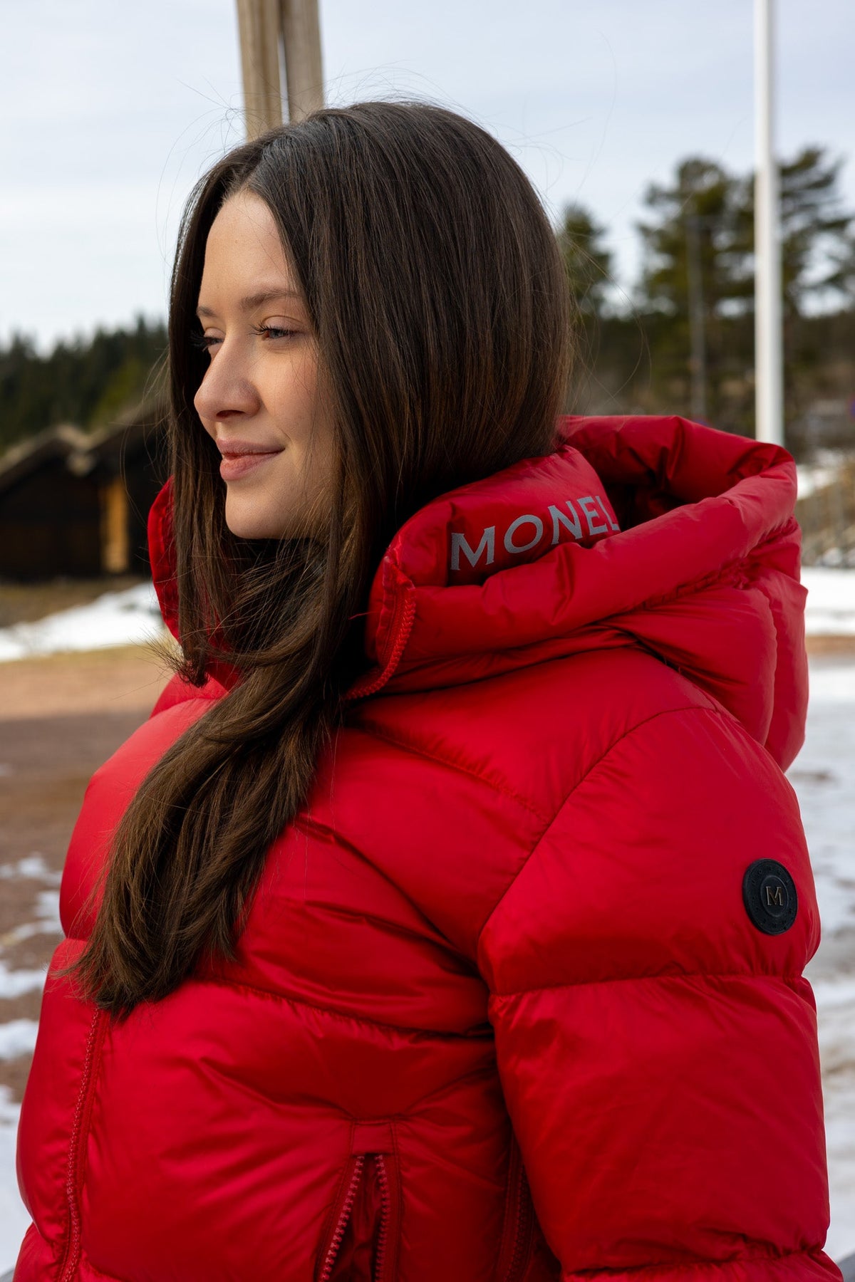 Val Cenis Short Bright Red fra Monel er et flott stykke yttertøy i en livlig rød farge. Denne vanntette jakken har myke bomullsribbemansjetter, reflekterende logo på kraven, utvendige glidelåser på sidene og lommer i midjen med glidelåslukking. Den har også en toveis YKK-frontglidelås og er fylt med dun. Produktets sammensetning er 100% nylon, 90% andedun / 10% fjær (RDS-sertifisert), med en fyllevne på 800. Perfekt for kalde dager.