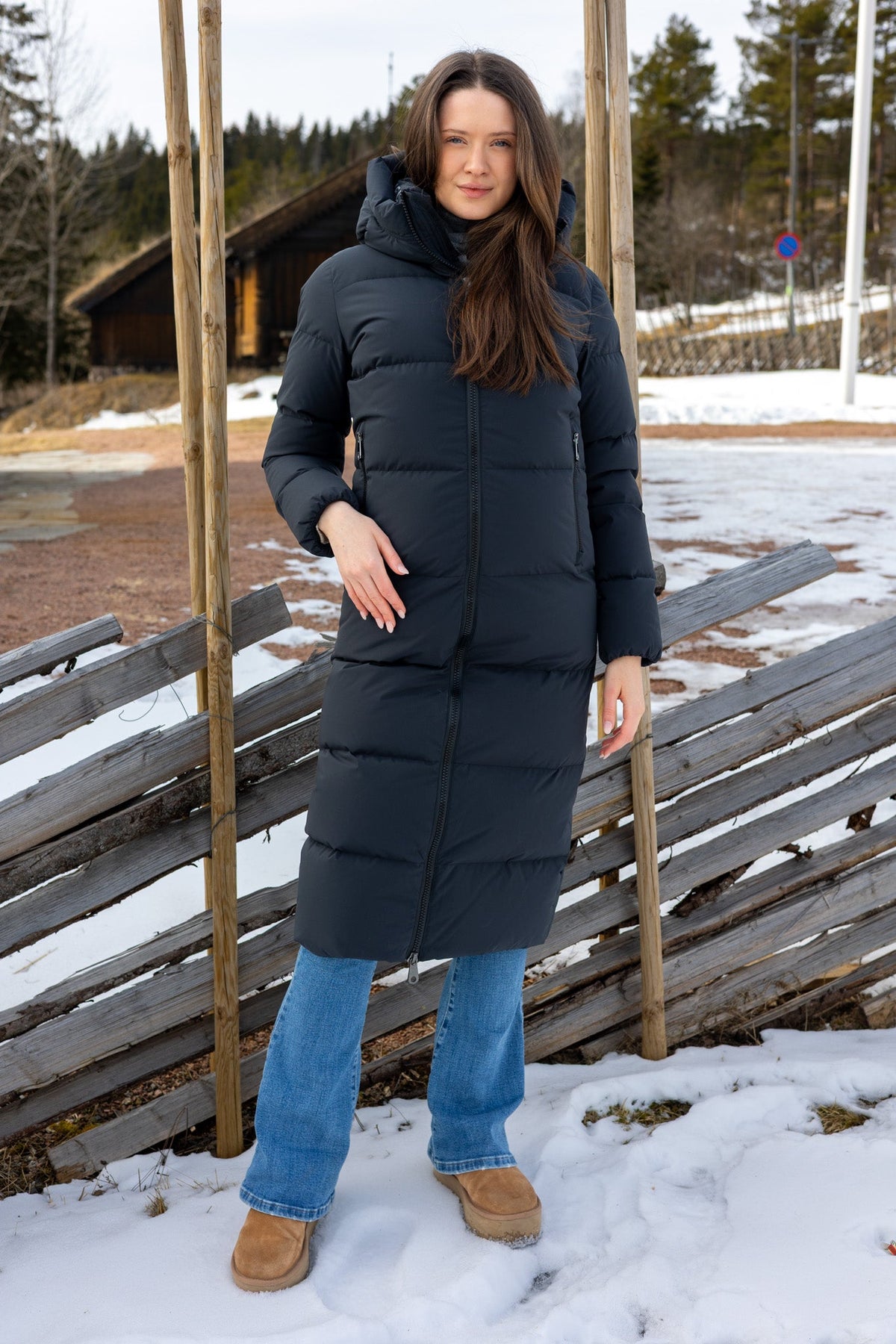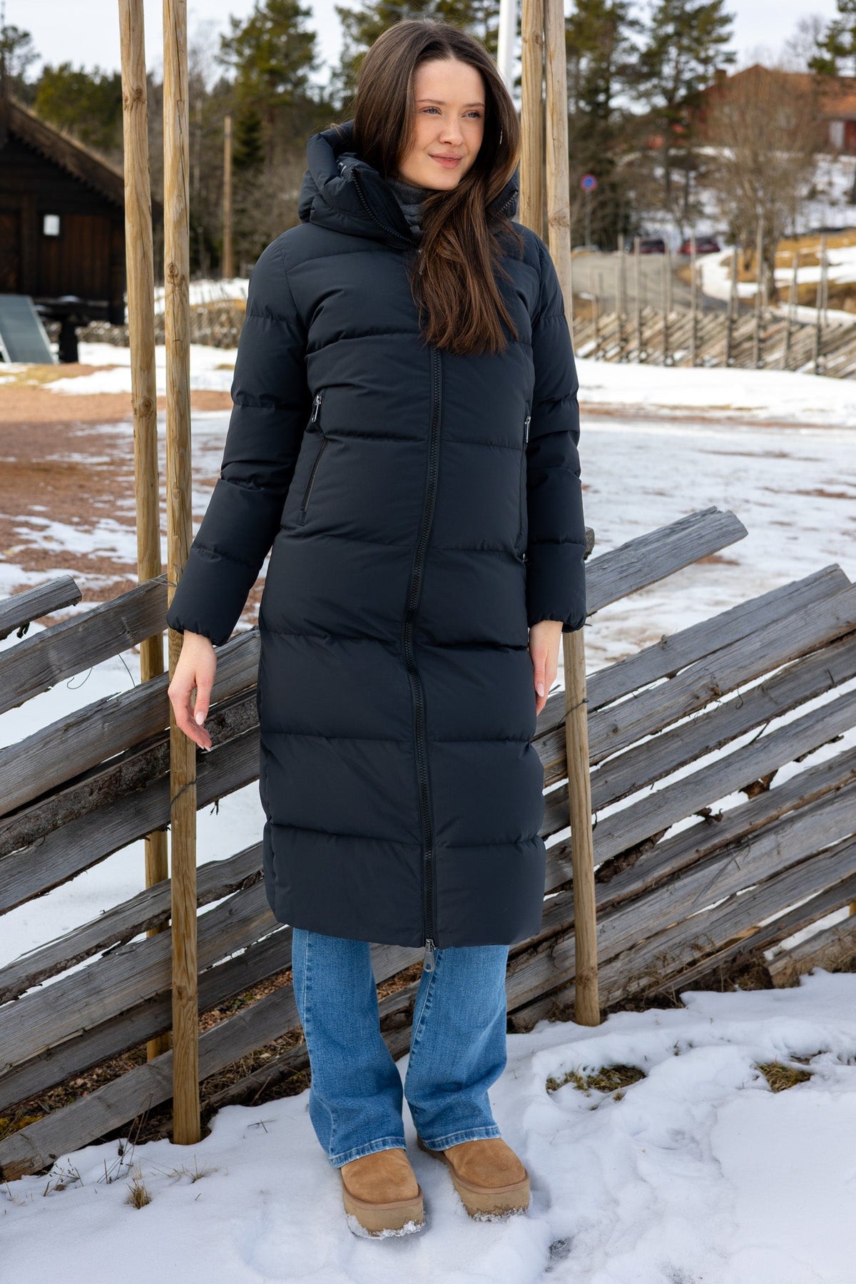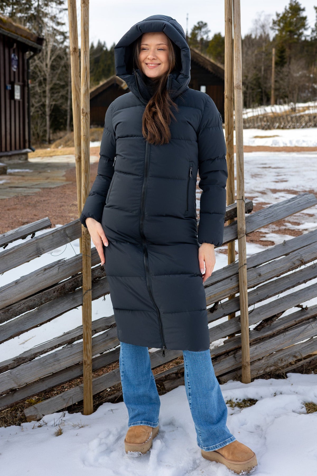 Camille Long Navy, en elegant og lang dunjakke i fargen navy. Camille Long Navy holder deg varm fra topp til tå gjennom hele vinteren. Jakken har en slim fit passform og en feminin silhuett som gir et sofistikert og moderne uttrykk. Med lange, praktiske glidelåser i siden, gir jakken ekstra bevegelighet og komfort. Vannavstøtende egenskaper sørger for at du holder deg tørr, selv på de mest snørike dagene. Jakken er laget av 100% nylon og fylt med 90% andedun og 10% fjær, noe som gjør den både varm og lett. Passer til normal til smal kroppsbygning.