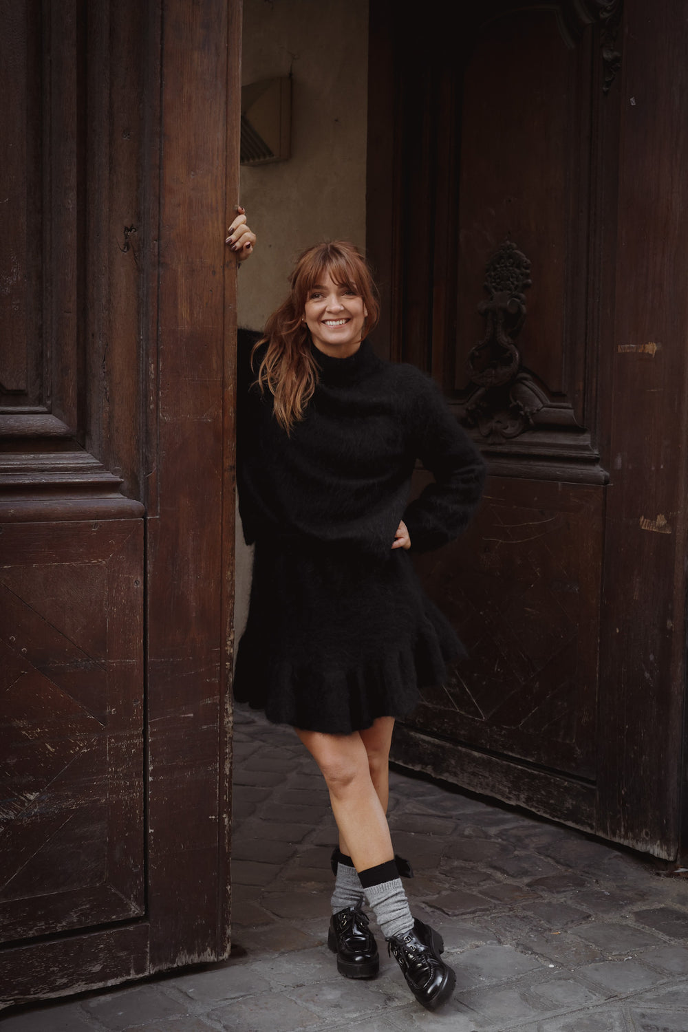 A-Shaped Cord Coat Dress i Black fra Confettibird er tidløs med en leken vri. A-Shaped Cord Coat Dress har en flatterende A-formet silhuett med skjulte knapper og delikate volangdetaljer langs fronten. Gjennomtenkte detaljer som volang- og knappdekor på ermene, praktiske lommer og myk kordfløyel gjør den både anvendelig og sofistikert. Style med en skjorte eller en smal pologenser under for et chic og allsidig uttrykk som varer sesong etter sesong.