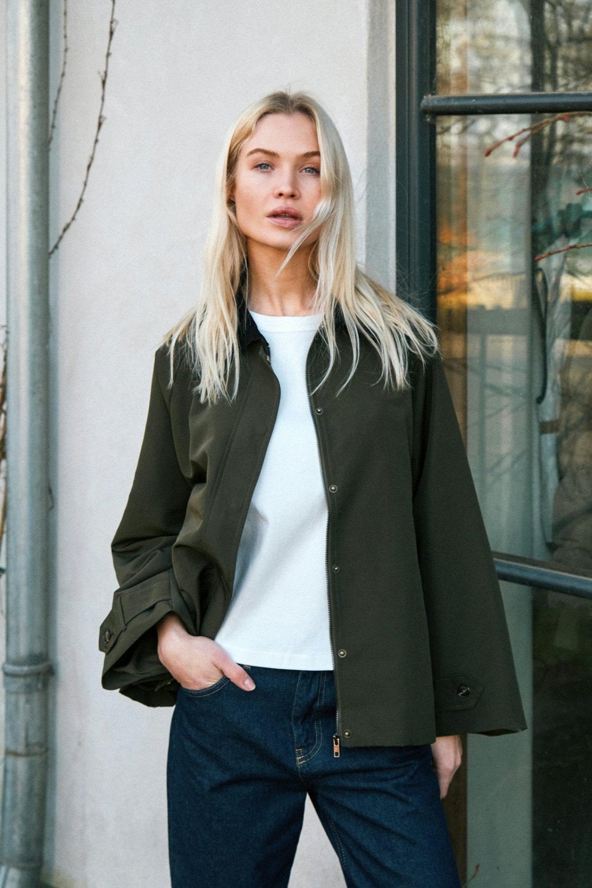 Gatbi Clean Jacket Dark Green fra Neo Noir er et perfekt yttertøy for enhver anledning. Denne jakken har en lett oversize passform, med lommer og en skjult glidelås foran. Gatbi Clean Jacket Dark Green er designet med fløyelsdetaljer på kragen og et stort panel på baksiden. Jakken er laget av 100% polyester, noe som sikrer holdbarhet og komfort.