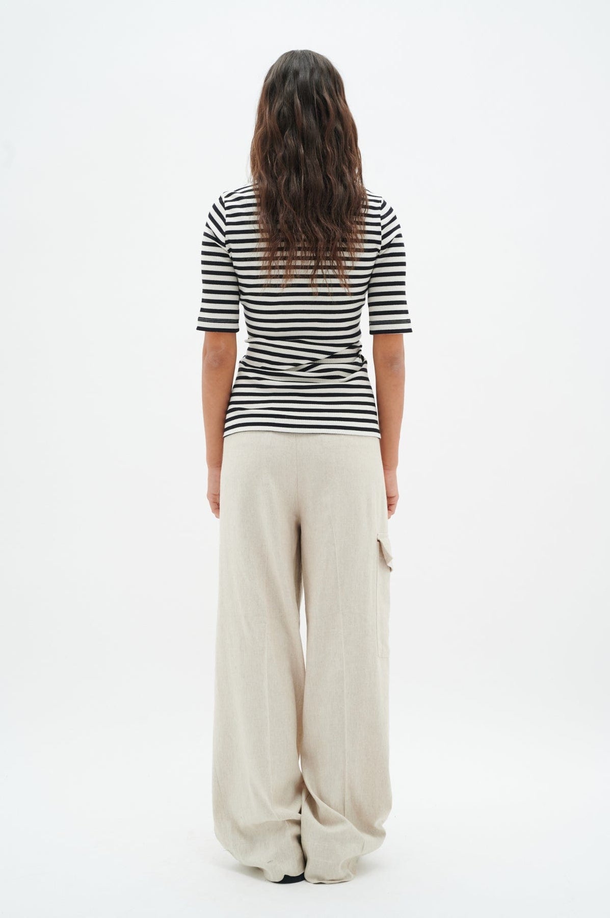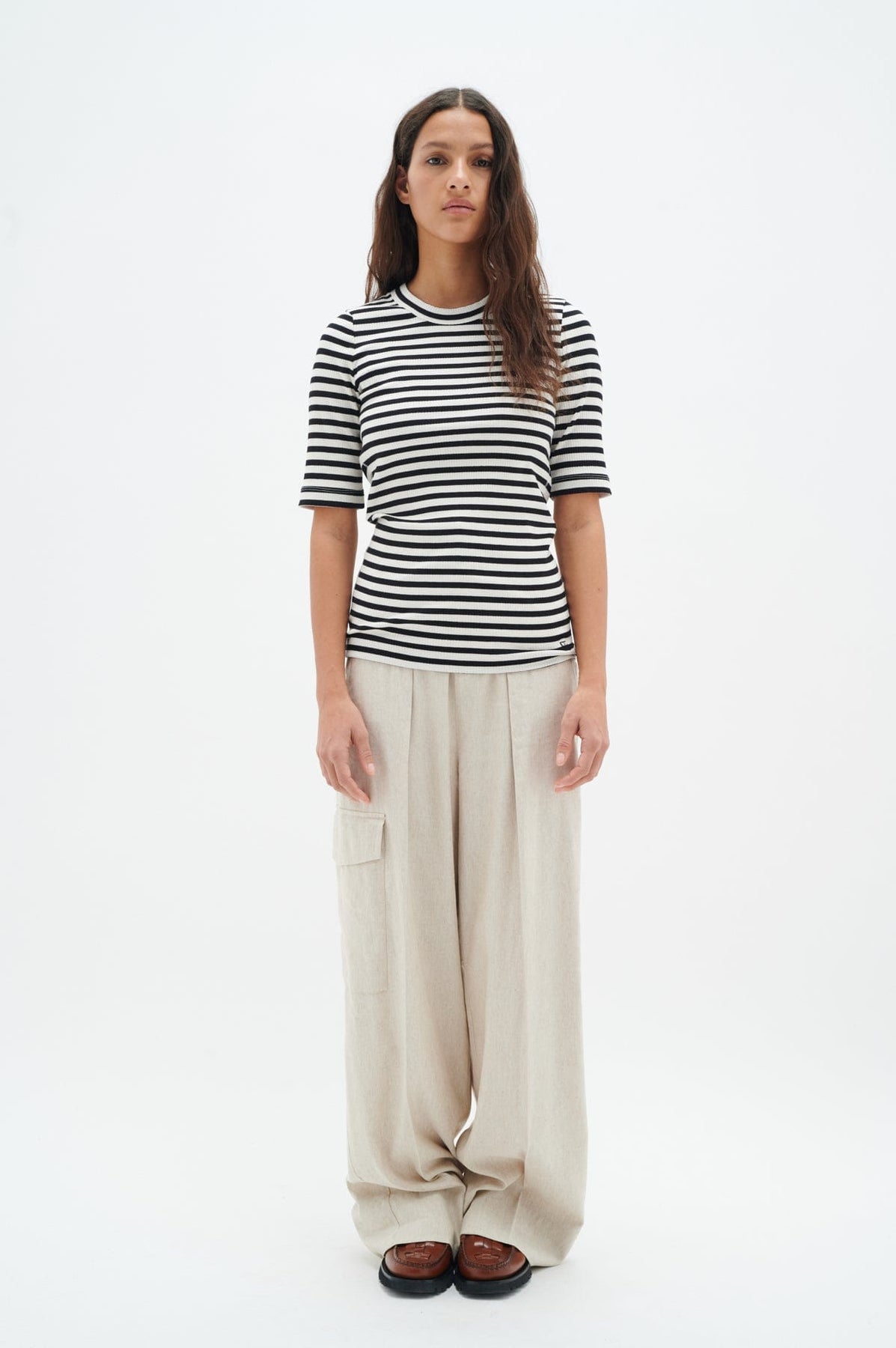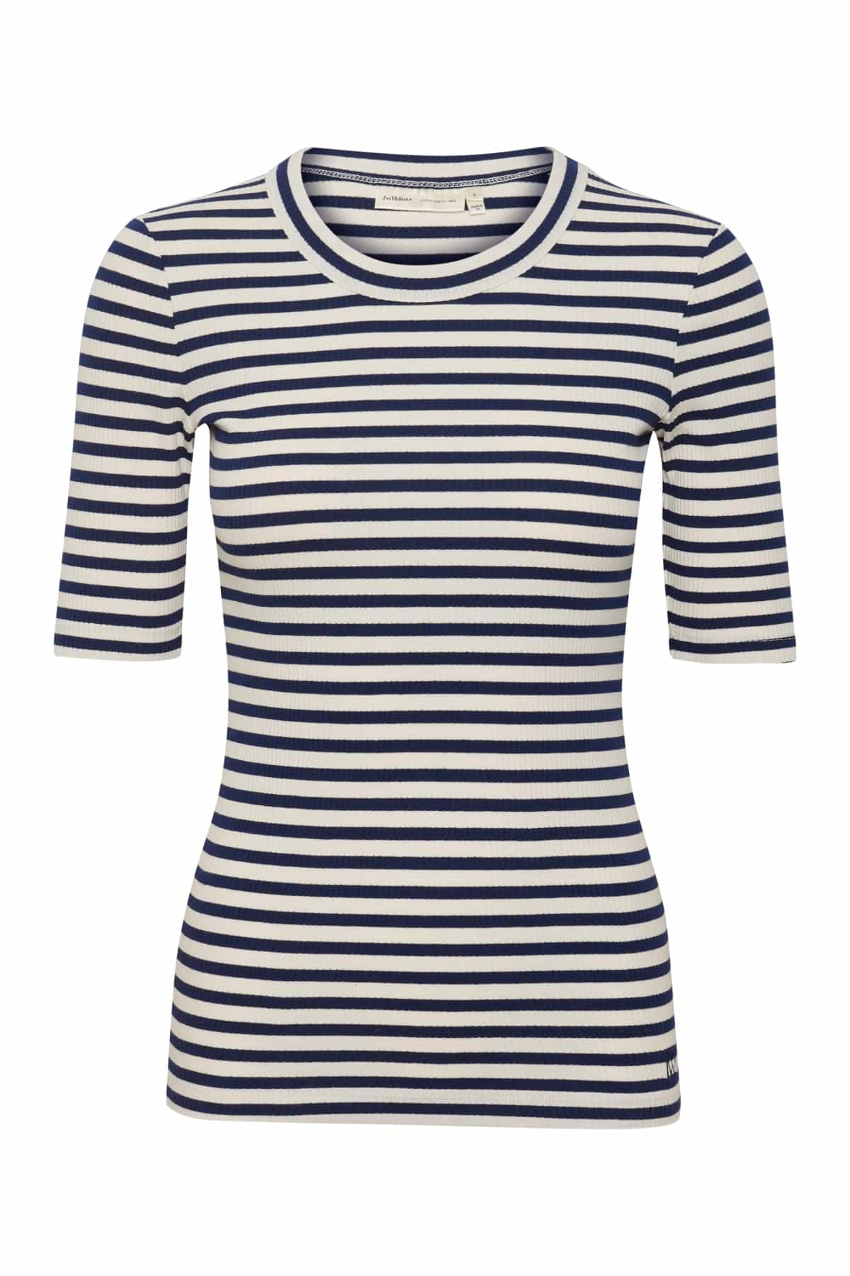 dagnaiw striped t-shirt in whisper white / midnight blue. sammensetning: 92% cotton,8% elastane