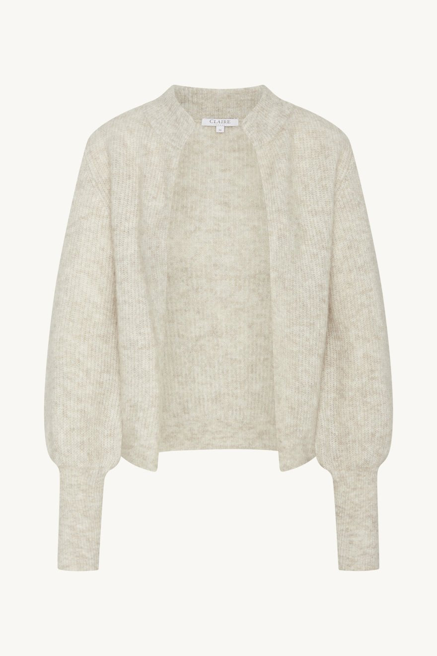 Claire Woman presenterer "cwchelsea", en elegant cardigan i fargen "snow white melange". Denne genseren er laget med en sammensetning av 33% mohair, 33% ull, 28% polyamid og 6% elastan, som sikrer både komfort og holdbarhet. Med sin tidløse stil og høykvalitetsmaterialer, er "cwchelsea" et must-have tillegg til enhver garderobe.