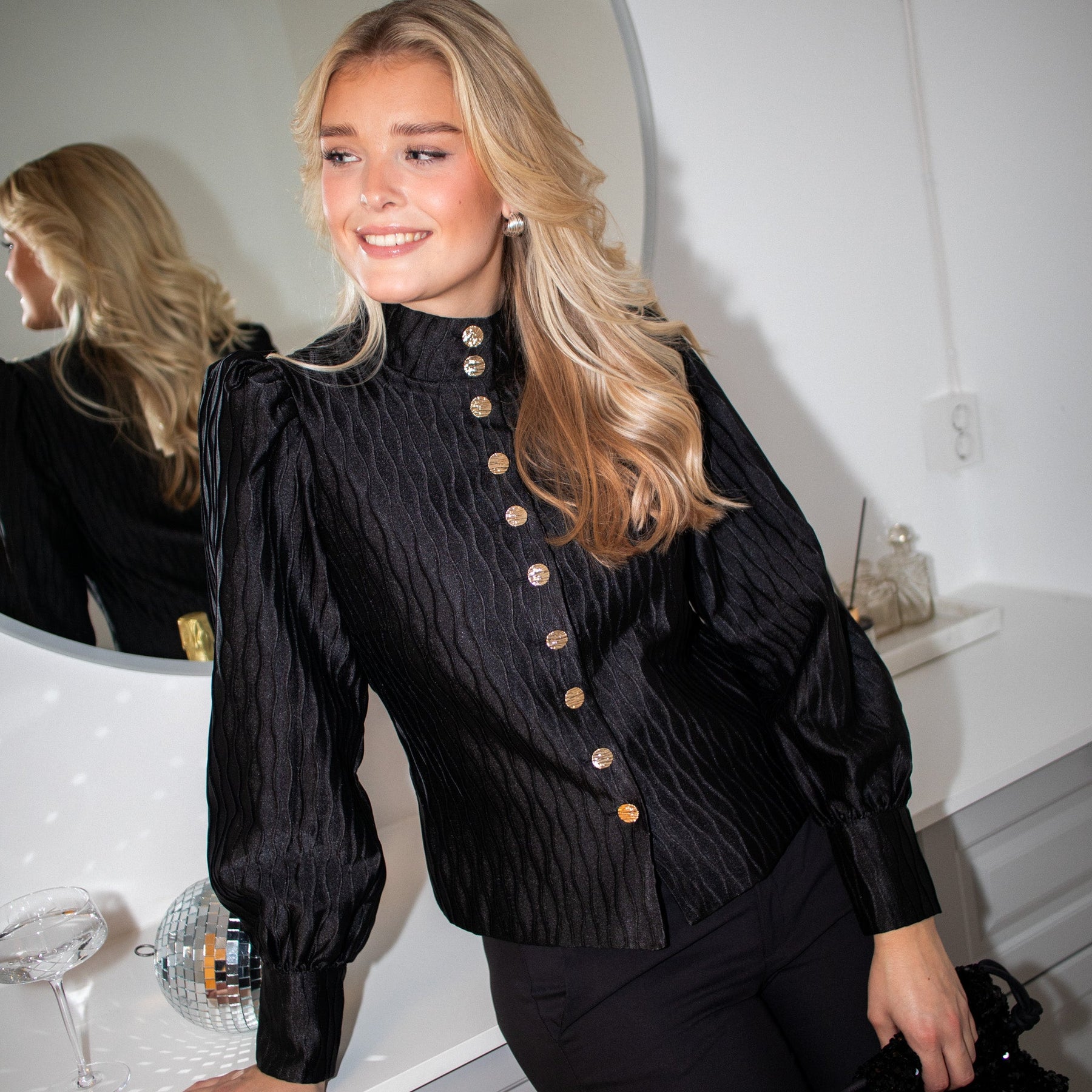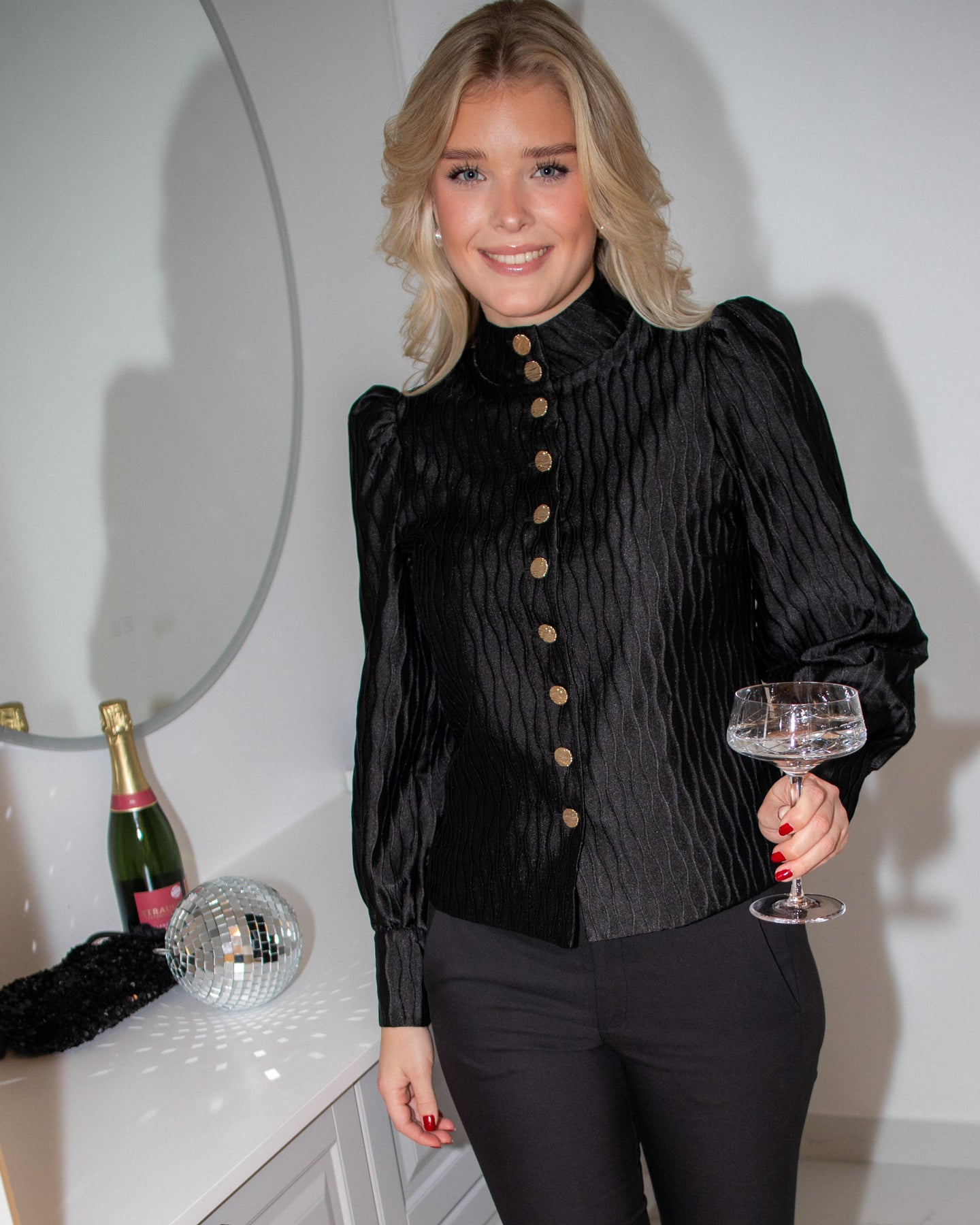 Ripple Ls Shirt Black fra YAS er en stilig skjorte som passer perfekt til festlige anledninger. Denne modellen er laget av et polyester satengstoff, et tungt og oppgradert stoff med en silkeaktig overflate og et vakkert fall. Ripple Ls Shirt Black har en skjortekrage, lange ermer med puffermer, høye mansjetter og knappelukking. Ekstra detaljer inkluderer knappe detaljer. Den har en normal passform som gir en komfortabel følelse. Kategorien er skjorter og bluser.