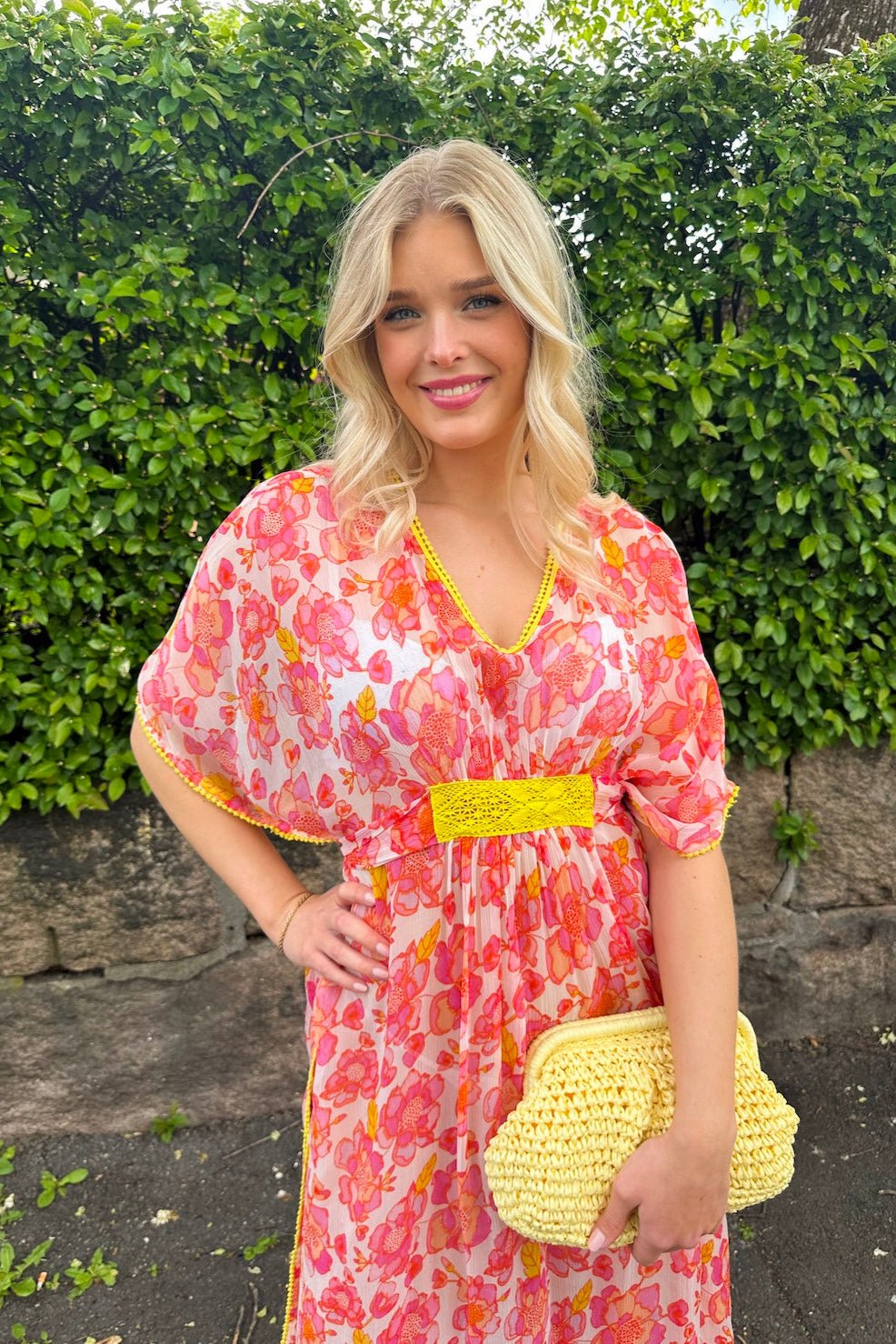 Rosa Flower Chiffon Dress White Pink from place du soleil