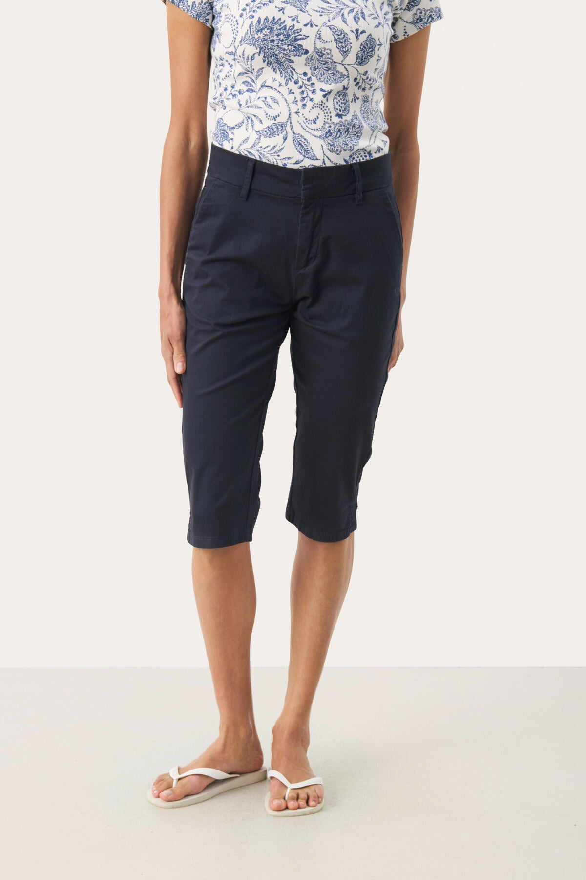 Renatapw Pants Dark Navy er en stilig og komfortabel bukse fra merket Part Two. Denne mørkeblå buksen er av capri-typen, perfekt for sommerdager eller varmere klima. Renatapw Pants Dark Navy er laget av en blanding av 98% bomull og 2% elastan, noe som gir både holdbarhet og fleksibilitet. Passer perfekt til både hverdags og formelle anledninger.