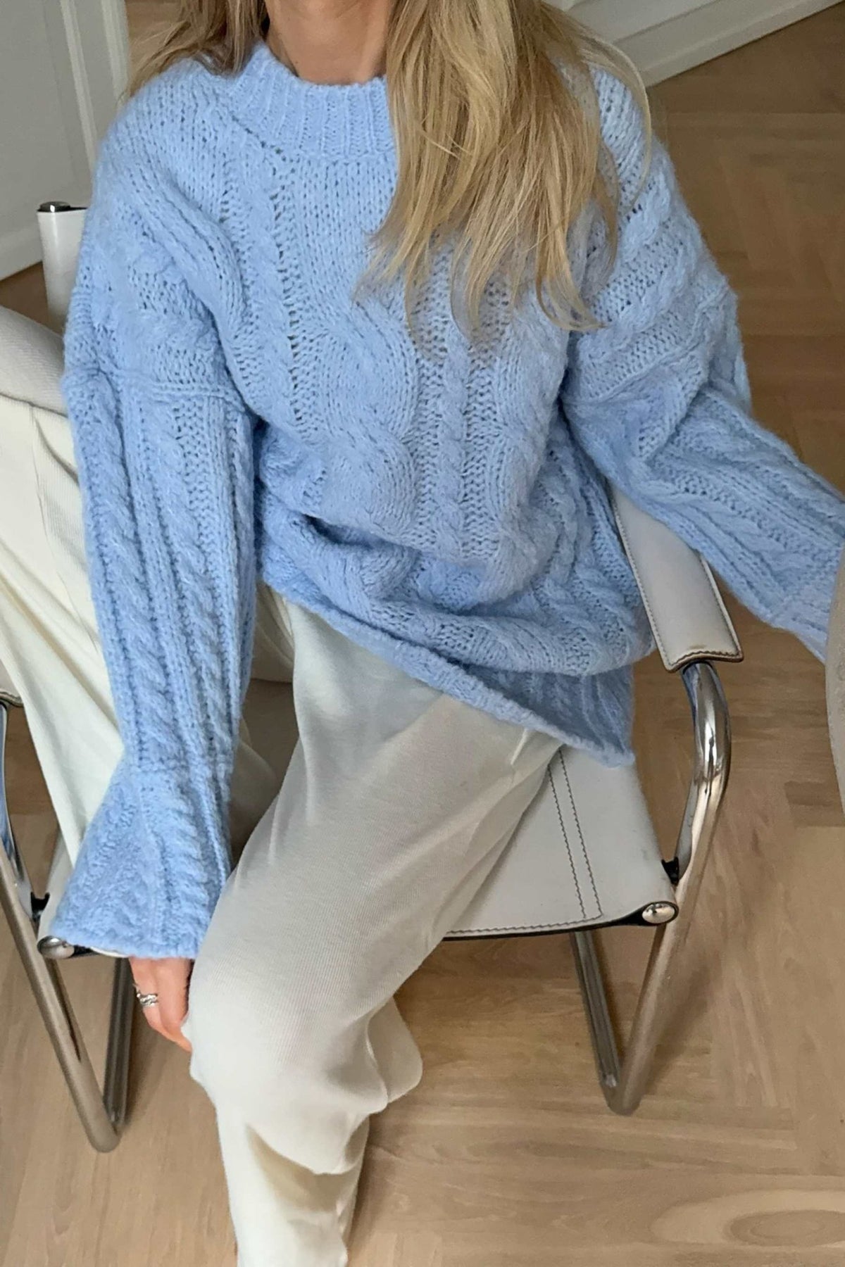 Kikiic Sweater Light Blue fra BYIC er en nydelig genser med de fineste detaljer. Hele strikken har et flettet mønster som gir genseren et unikt og stilig utseende. Den er laget i en blanding av 62% akryl, 18% polyester, 8% ull, 8% viskose og 4% alpakka, noe som sikrer god kvalitet og holdbarhet. Kikiic Sweater Light Blue er tro mot størrelsen, noe som gjør den lett å tilpasse til din stil.