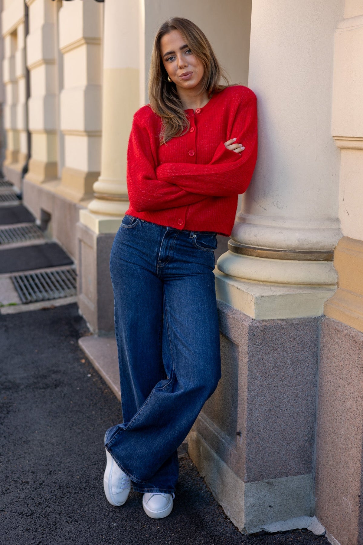 Sia Ras Ls Knit Cropped Cardigan Equestrian Red | Genser | Smuk - Dameklær på nett