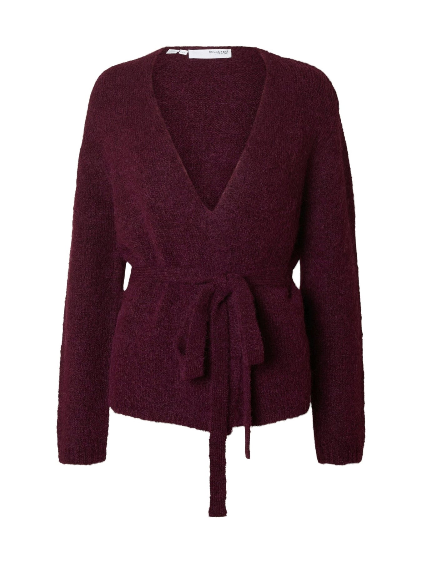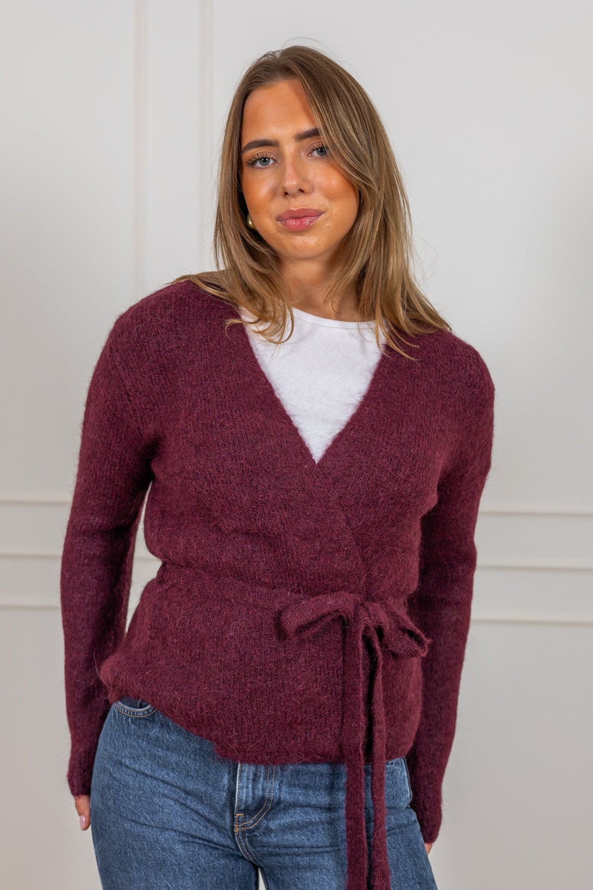 Gabella Ls Knit Belt Cardigan Fig Melange