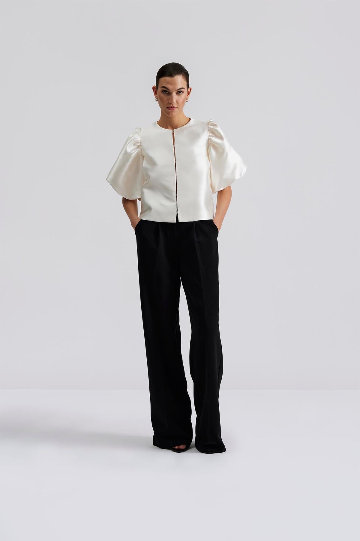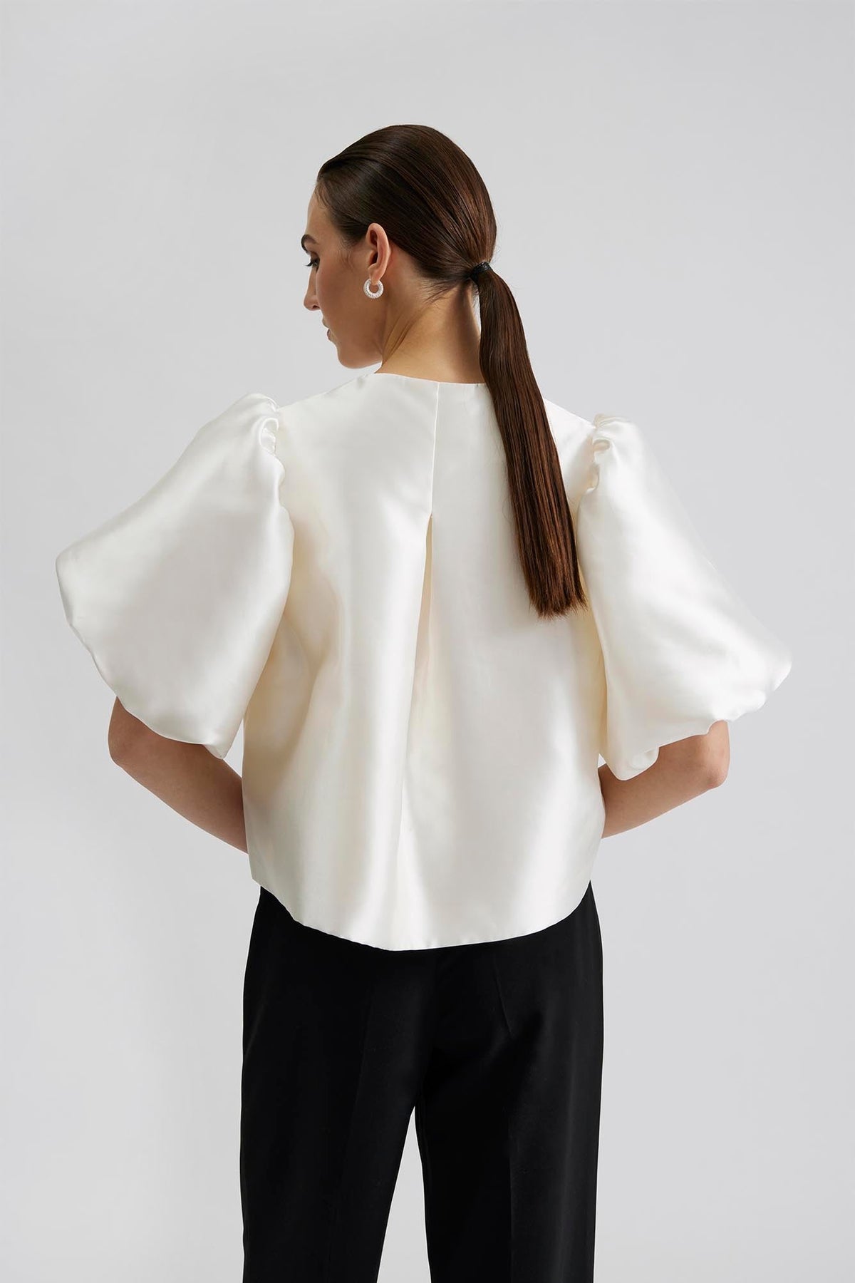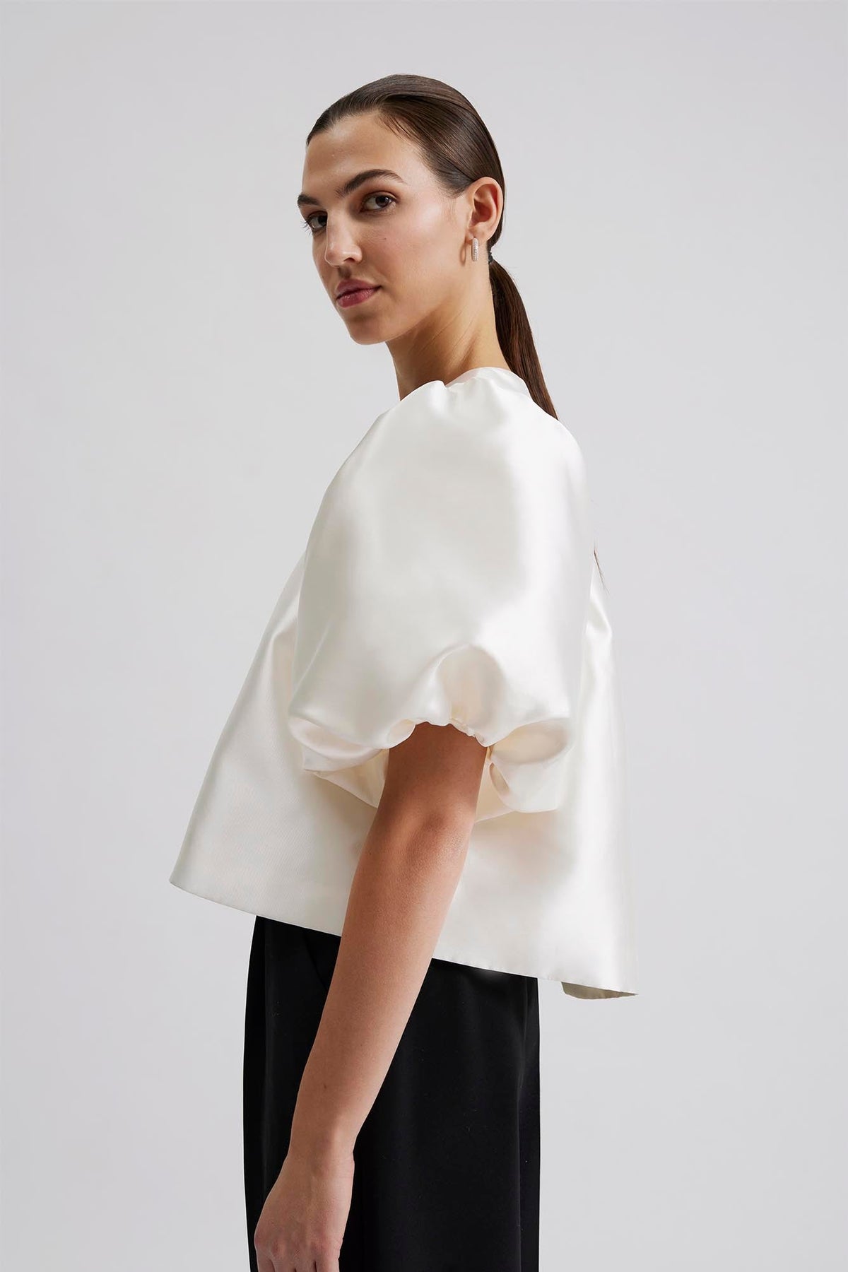 Cleo Blouse Ivory fra Malina er en oversize bluse i elfenbensfarge som skiller seg ut med sine puffy ballongermer. Denne blusen har en vid silhuett i kroppen og skjulte kroker foran. Cleo Blouse Ivory er laget av 100% polyester, mens fôret består av 97% polyester og 3% elastan. Denne blusen er egnet for 30 graders pleievask. Den passer perfekt inn i kategorien skjorter og bluser.