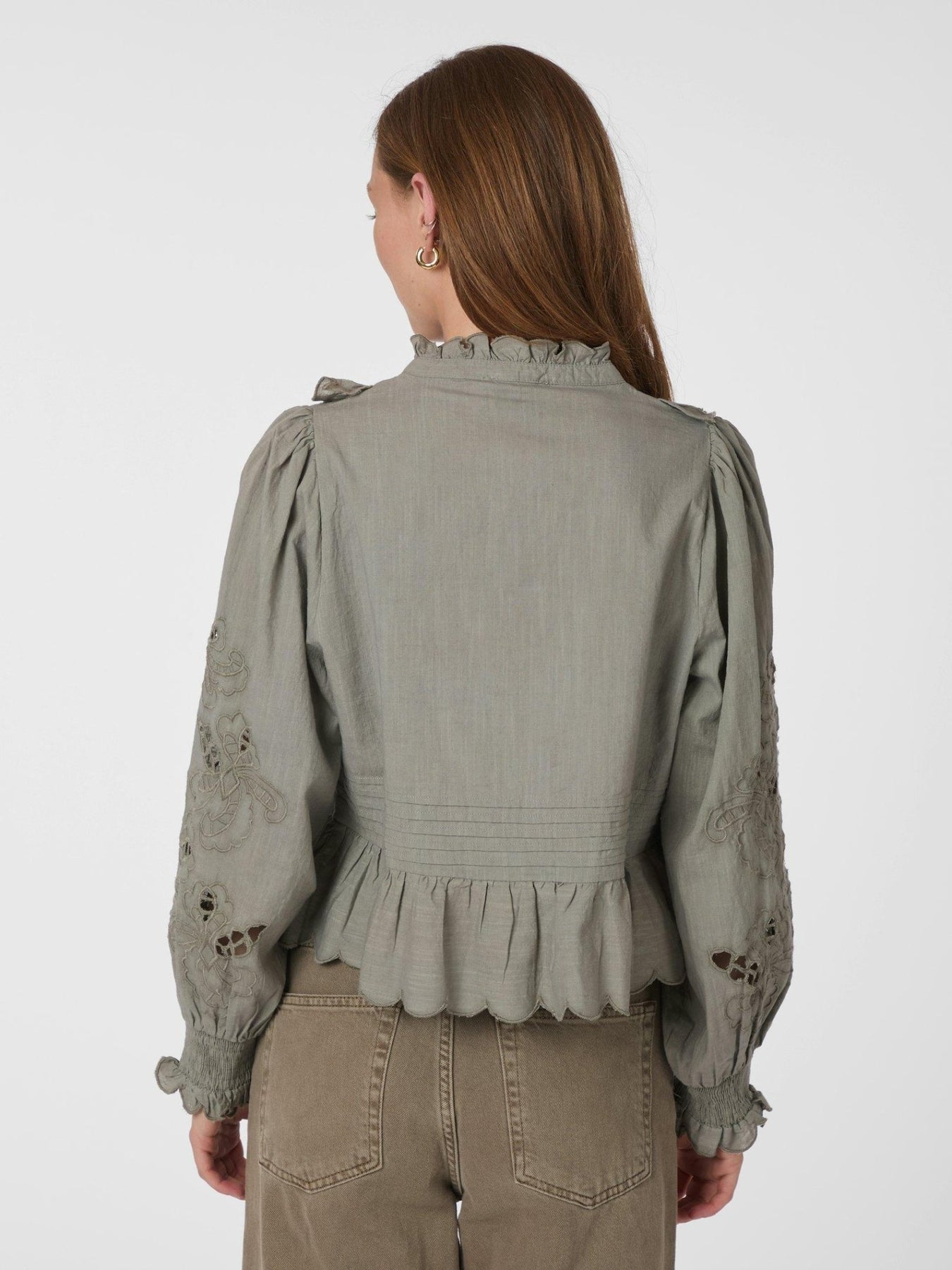 Petrine Embroidery Blouse Smoke Green | Skjorter og bluser | Smuk - Dameklær på nett