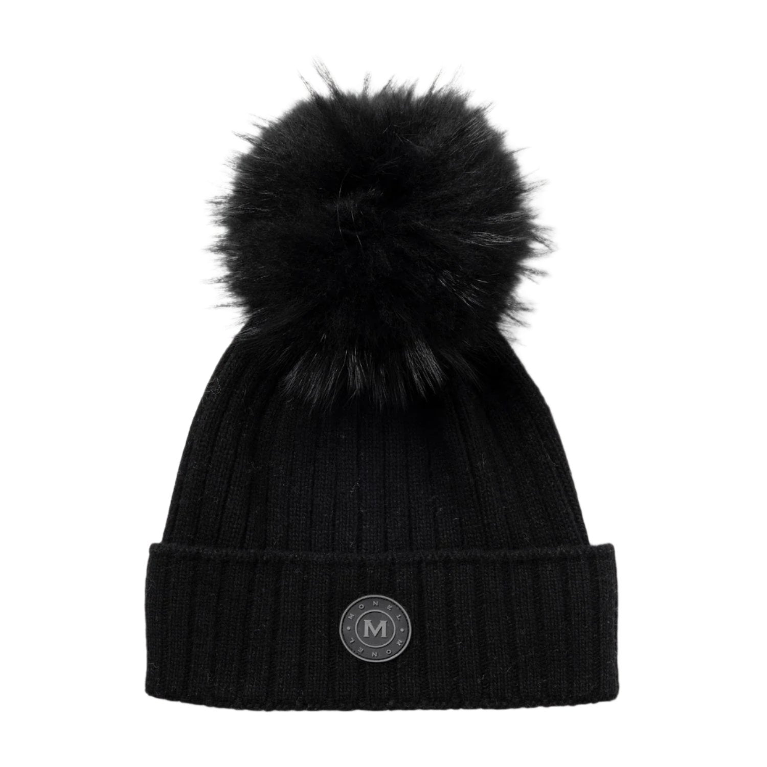 St. Moritz Beanie Black fra Monel er et stilig tilbehør i fargen svart. Denne luen er laget av en behagelig blanding av 40% ull, 30% viskose, 20% polyamid og 10% kashmir, med en detalj av vaskebjørnpels. Perfekt for kalde dager, gir denne luen både varme og stil.