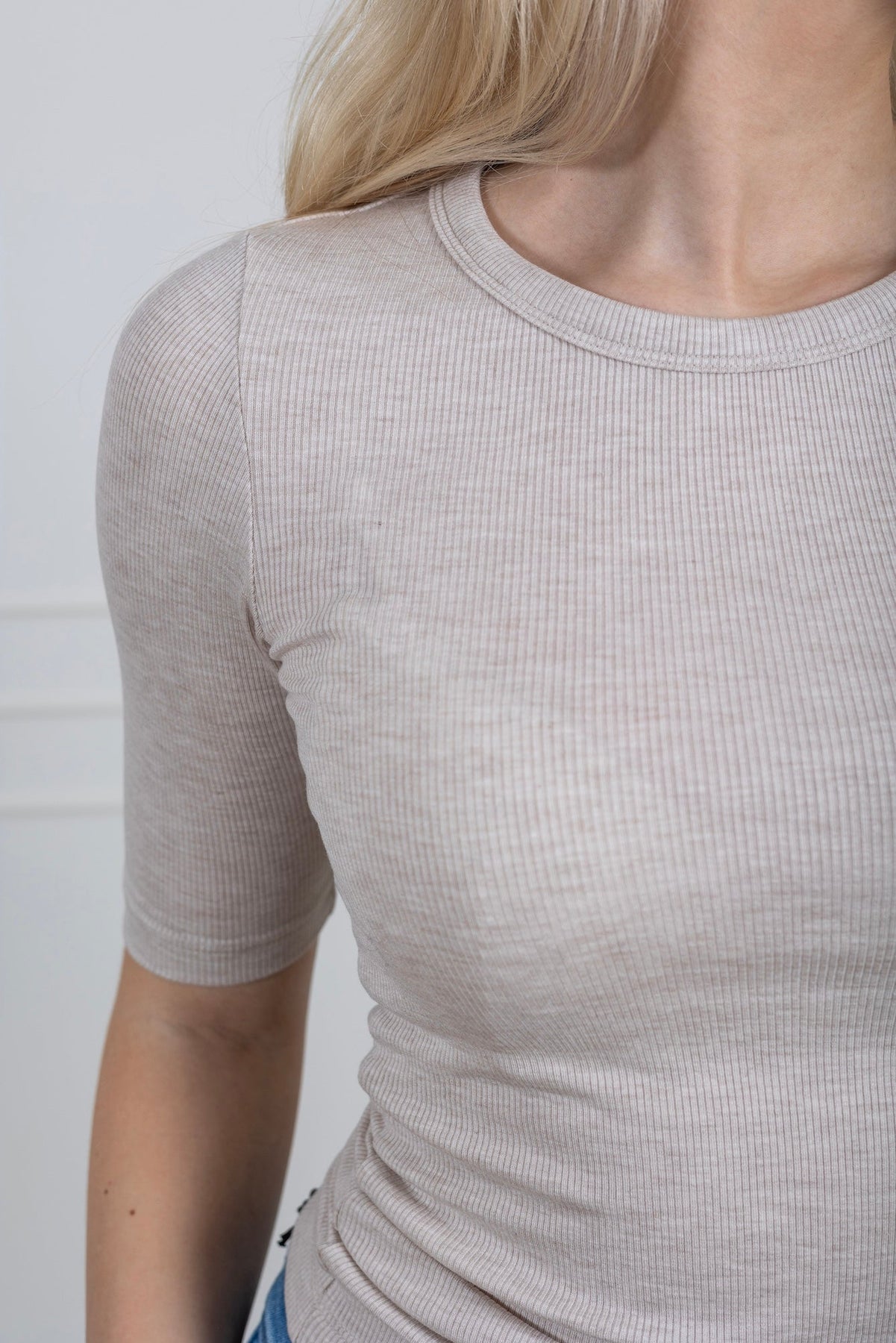 Dianna 2/4 O - Neck Top Oatmeal Melange | Topper | Smuk - Dameklær på nett