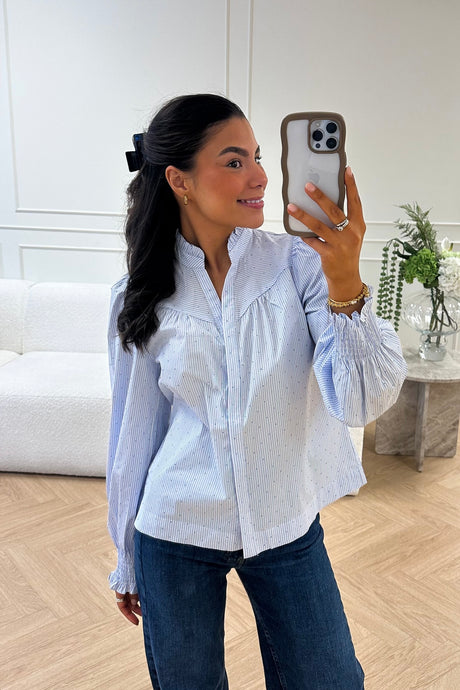 Yasasina Ls Long Shirt Dress Star White Emilie er en stilig kjole fra Y.A.S. Denne modellen er laget i en teksturert viskosestoff som er pustende og draperer lett på kroppen med en myk følelse. Teksturen i stoffet tilfører en ekstra detalj med et mønster innenfor stoffet selv. Kjolen har en kina krage, lange ermer med rynkede mansjetter og knappelukking. Hele overflaten av produktet er dekket med et trykk. Kjolen har en vanlig passform og er laget av 100% viskose lenzing™ecovero™. Yasasina Ls Long Shirt Dress Star White Emilie er det perfekte tilskuddet til enhver garderobe.