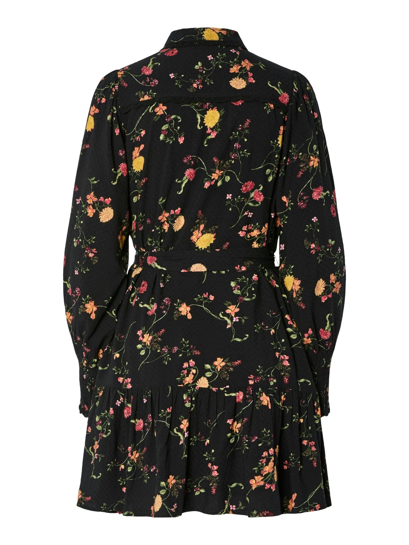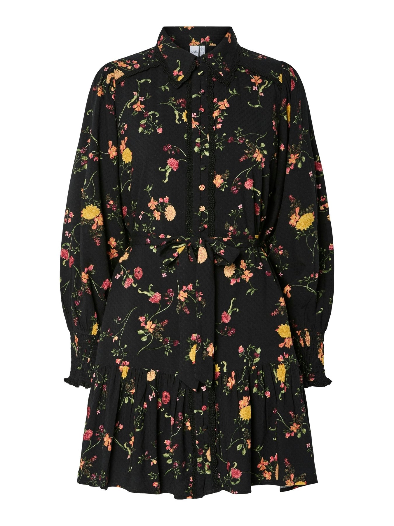 Tilera Ls Shirt Dress Black Botari er en kort kjole perfekt for høstsesongen. Denne stilen er laget av et viskosestoff, som er pustende og draperer lett på kroppen med en myk følelse. Tilera Ls Shirt Dress Black Botari har en skjortekrage, lange ermer, mansjetter med elastisk binding, knappelukning og ekstra detaljer som en kutlinje i midjen og blonderdetaljer. Med en vanlig passform, er dette produktet fra YAS et stilig tillegg til enhver garderobe.