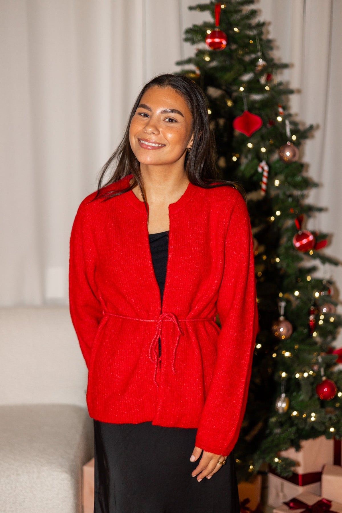 Sia Ras Ls Knit Belt Cardigan Equestrian Red Melange