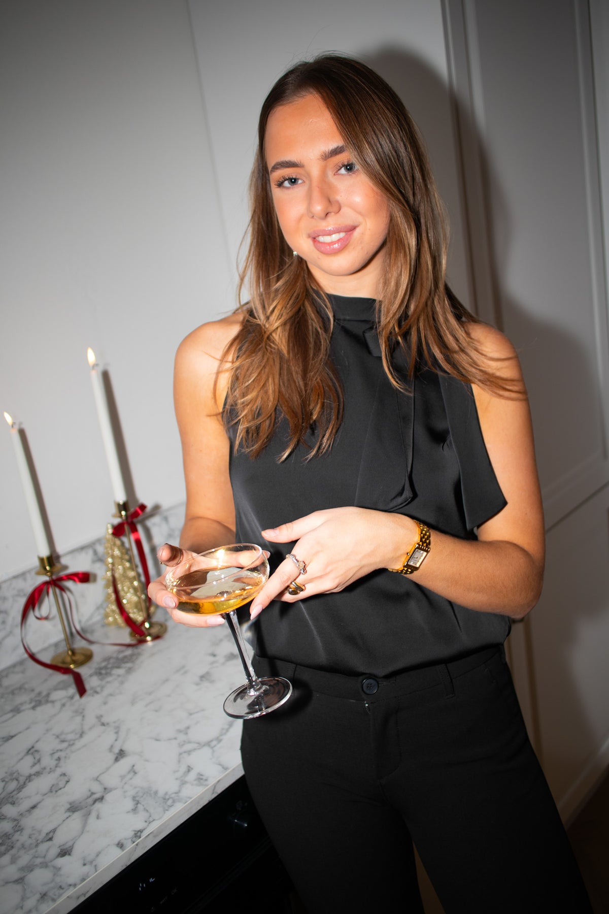 Veda Drapy Satin Top Black fra Neo Noir er en elegant topp som vil gi ethvert antrekk et løft. Denne toppen er preget av en flott sløyfe rundt halsutskæringen og en balloneffekt i bunnen, som gir et unikt og stilig utseende. Toppen er laget av fin satin kvalitet, som gir en luksuriøs følelse. Veda Drapy Satin Top Black er designet for den moderne kvinnen, og passer perfekt til både hverdag og fest. Toppen er laget i 100% polyester.