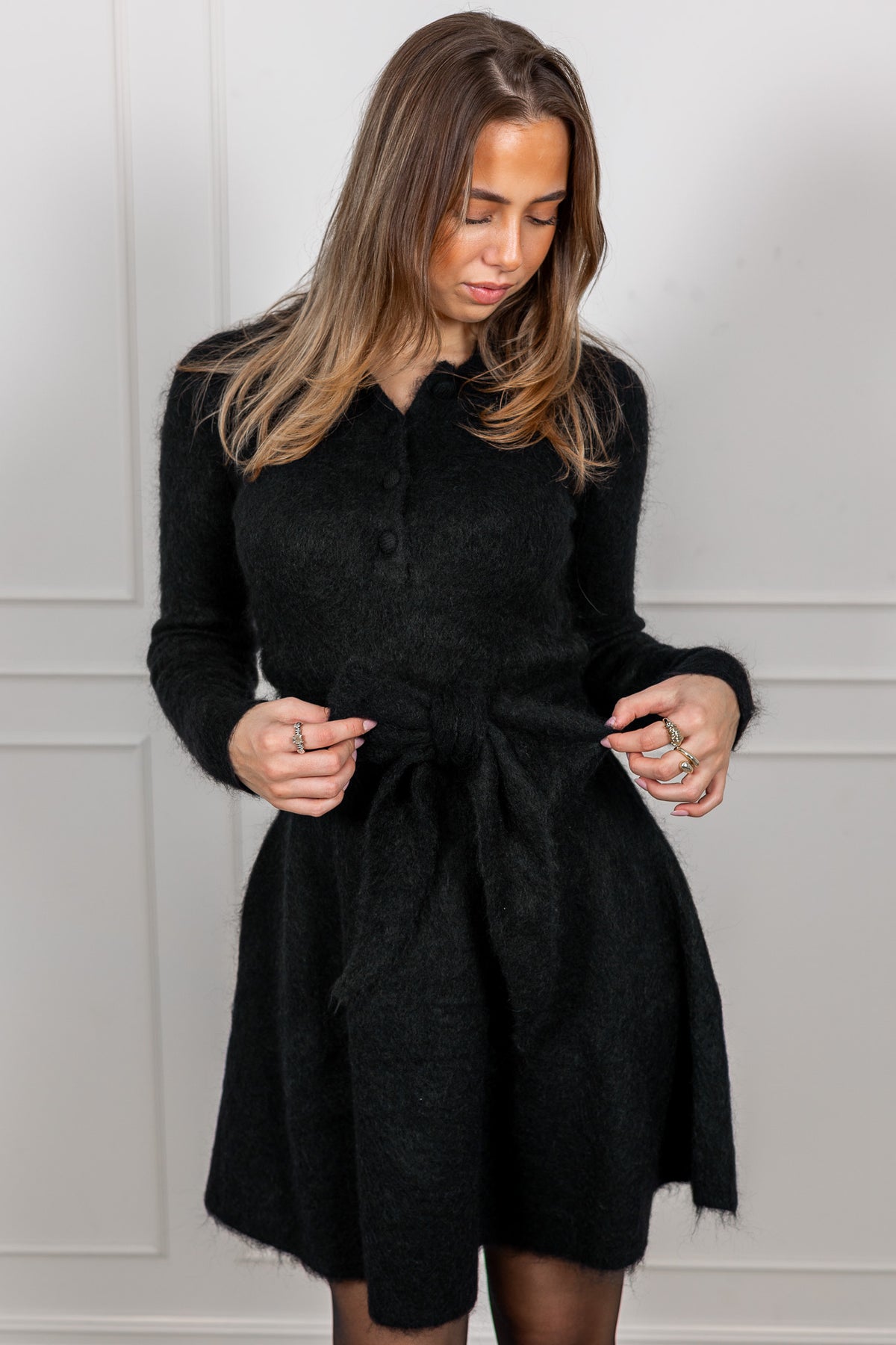Bon Weekend Knit Dress i Black fra Confettibird er feminin, tidløs og uanstrengt chic. Bon Weekend Knit Dress har en klassisk krage med delikate knapper som gir et velkledd, men avslappet uttrykk. Det avtakbare beltet markerer midjen for en flatterende silhuett, mens den myke strikken sørger for komfort i hverdagen. Style med boots for en avslappet daglook, eller med hæler for en sofistikert kveldsstil. En garderobefavoritt som varer sesong etter sesong.
