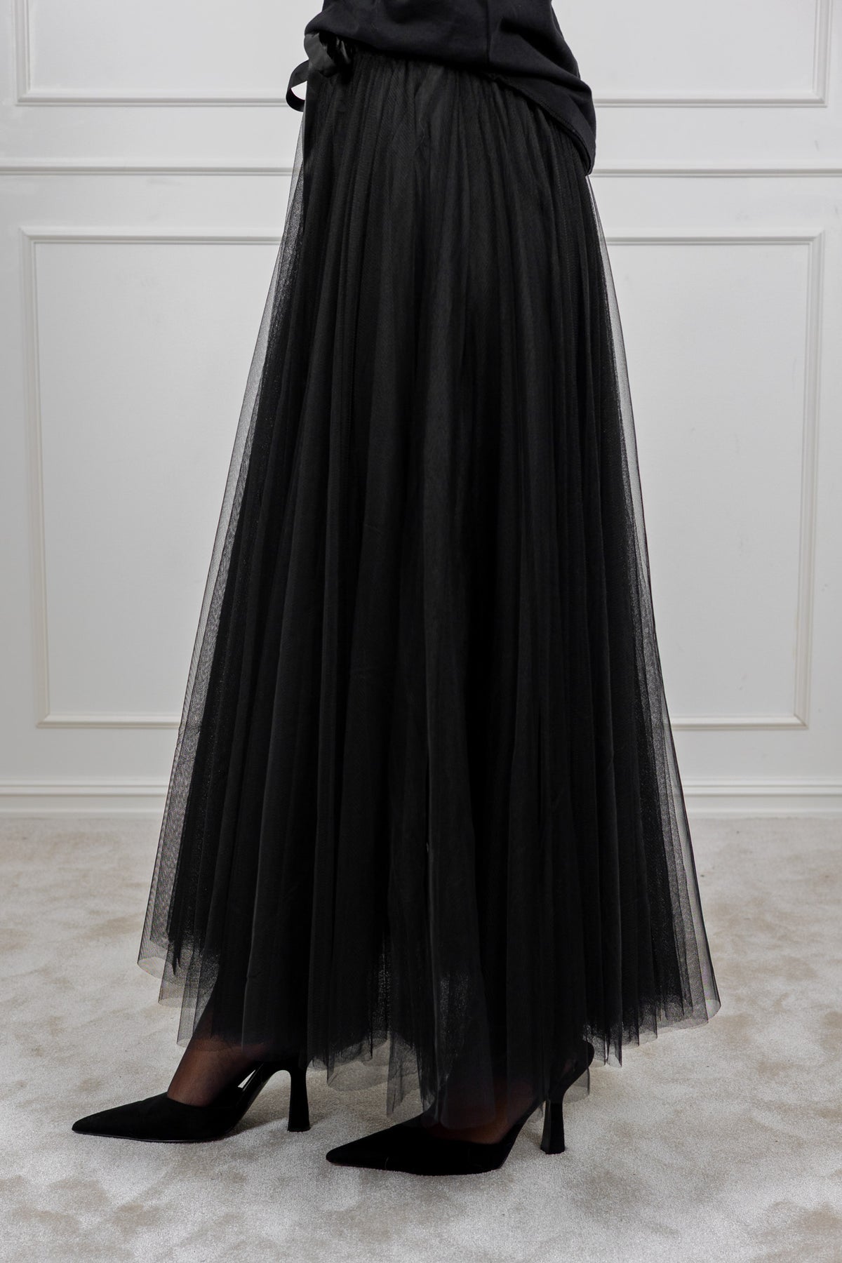 Dette skjørtet er alt vi drømmer om akkurat nå. Med sin dype sorte farge og feminine snitt gir det deg den perfekte kombinasjonen av fransk chic og hverdagslekent. Enten du vil style det med en enkel topp for en casual look, eller gå all-in med matchende plagg fra "From Paris With Love", blir dette fort en ny garderobefavoritt.