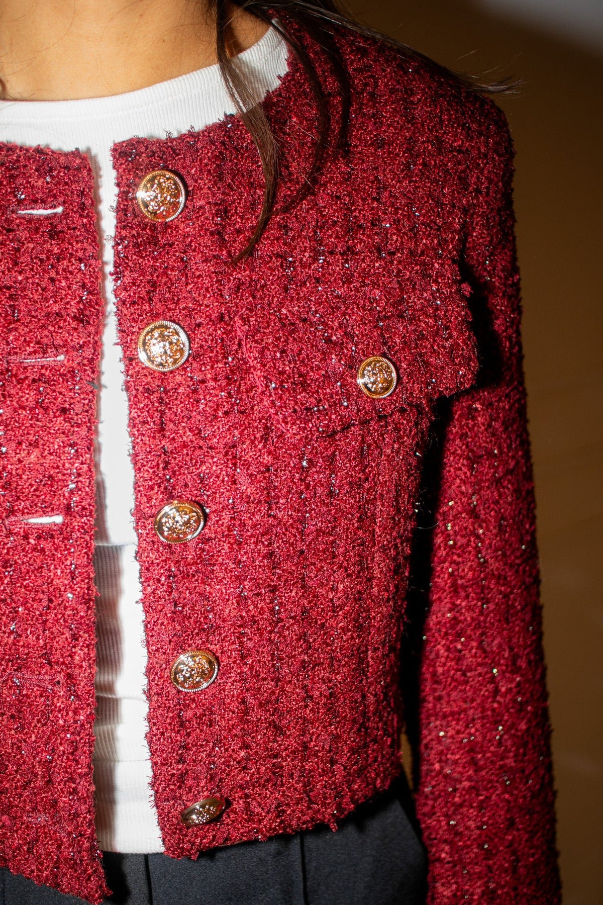 Vi har fått inn vårt nyeste crush fra From Paris With Love – en tidløs og chic tweedblazer som gir antrekket ditt det lille ekstra. Blazeren kommer i en nydelig bordeaux fargetone med diskret vevde detaljer som gjør den både klassisk og trendy på samme tid.