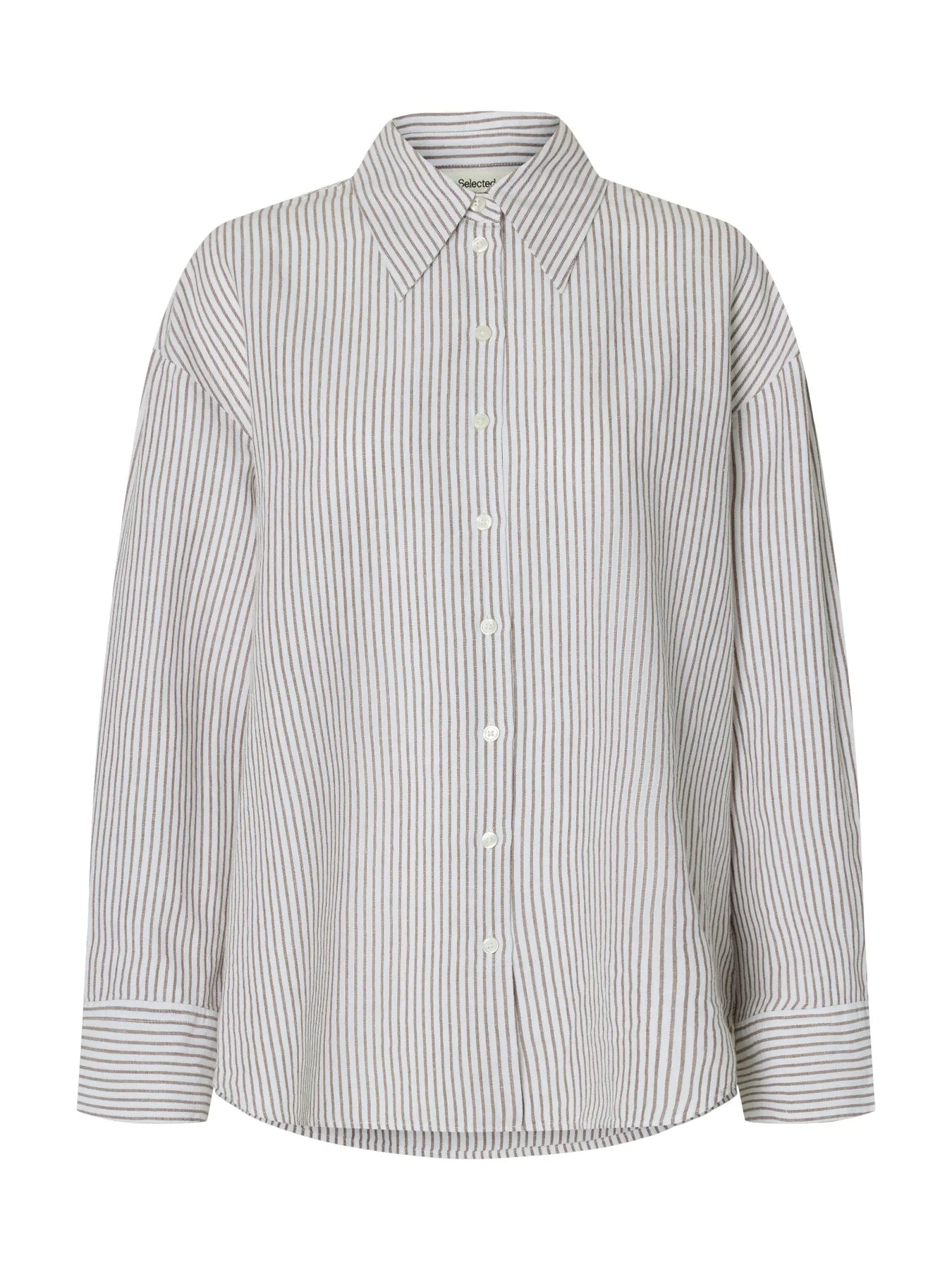 Cleo Oversize Linen Blend Shirt Bright White Chocolate Chip
