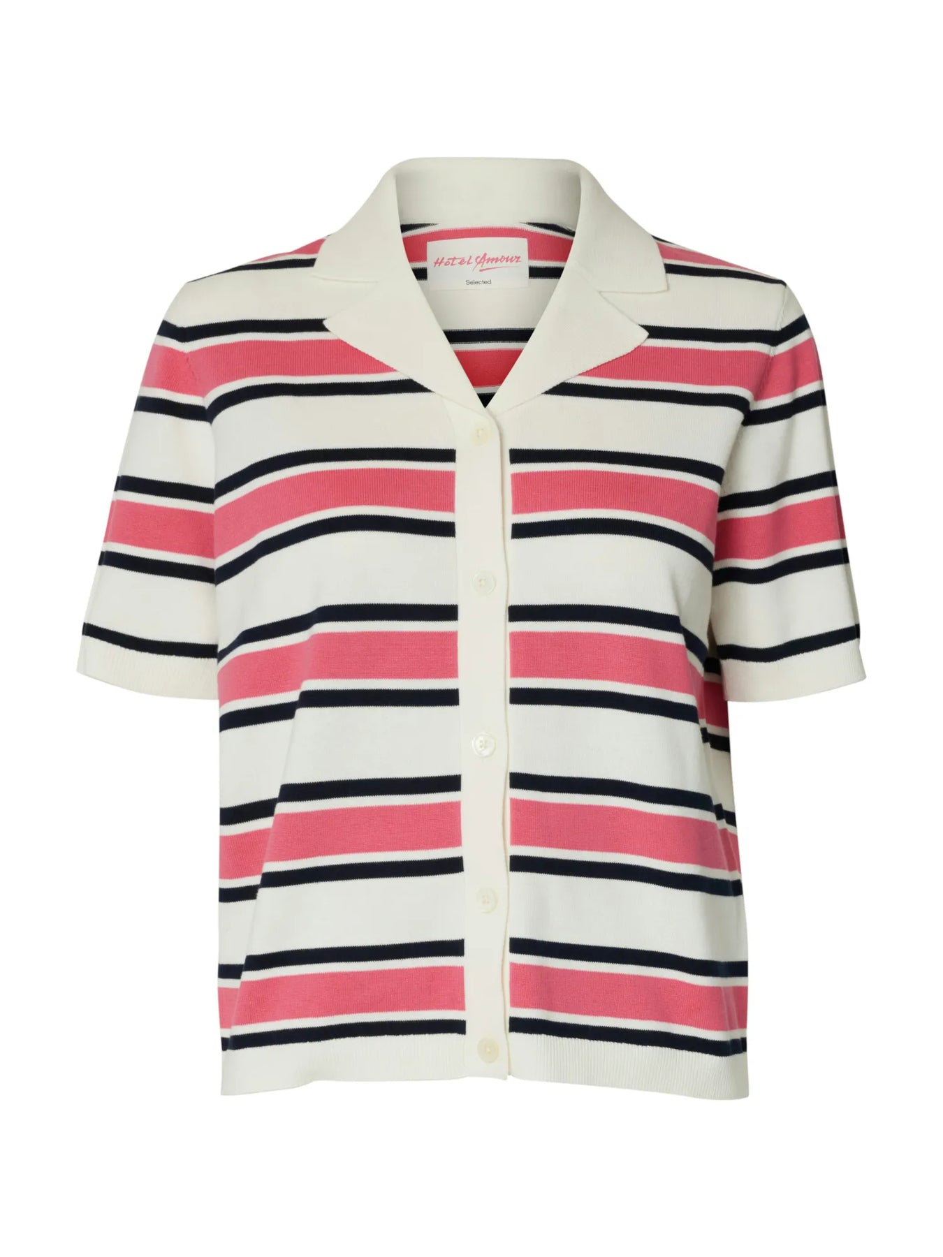 Amour Ss Knit Polo Cardigan Egret Hot Pink And Sky Captain
