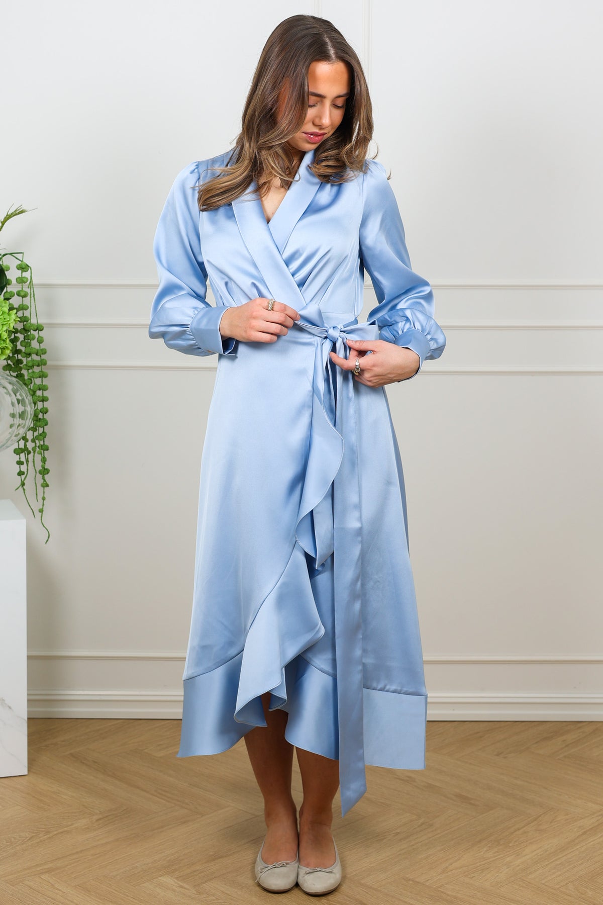 Iza Midi Dress Light Blue fra Love Lolina er en elegant og feminin kjole som passer perfekt til både hverdag og fest. Den lyseblå fargen gir et friskt og sofistikert uttrykk, mens den flatterende midilengden gjør kjolen både tidløs og anvendelig. Et stilrent valg til enhver garderobe. Perfekt som kjole til bryllup.
