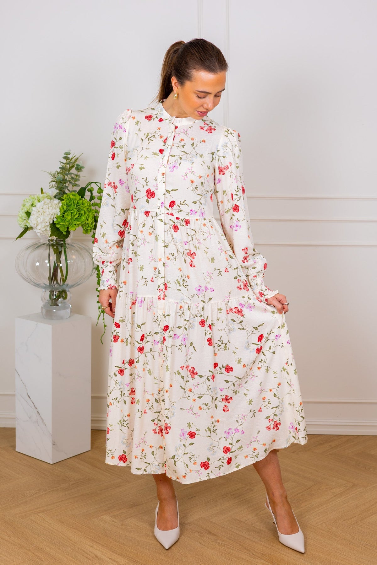 Asina Ls Long Dress Pristine Botalia er en elegant og tidløs lang kjole som passer perfekt til både hverdag og festligheter. Det delikate mønsteret gir kjolen en vakker tekstur og et eksklusivt uttrykk som umiddelbart skiller seg ut. Den lette viskosekvaliteten faller mykt langs kroppen og gir en flatterende silhuett som er behagelig å bruke gjennom hele dagen.