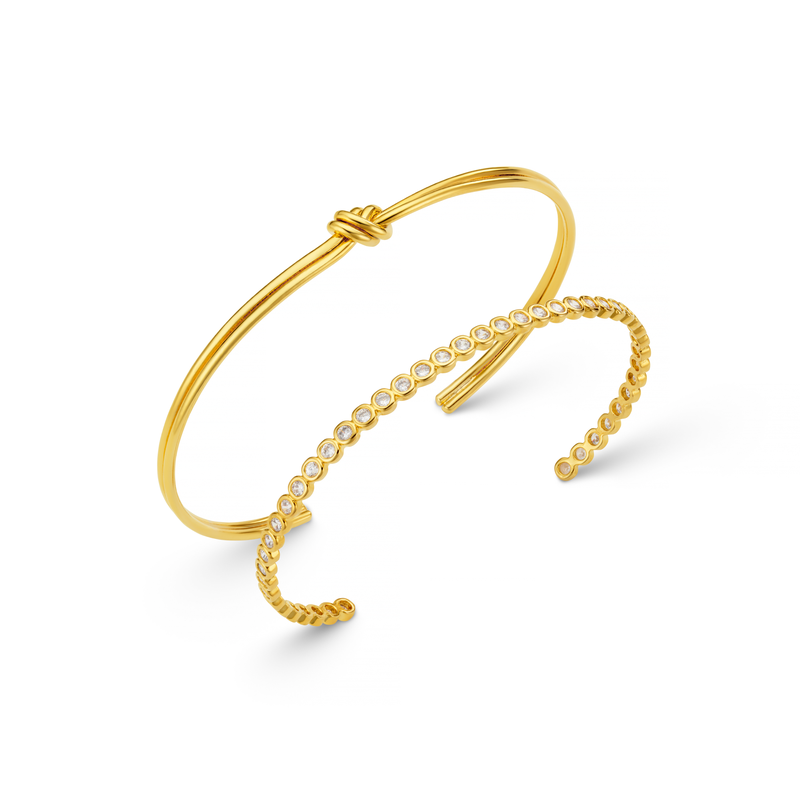 Linear Knot & Crystal Bangle 2 Pack Pale Gold