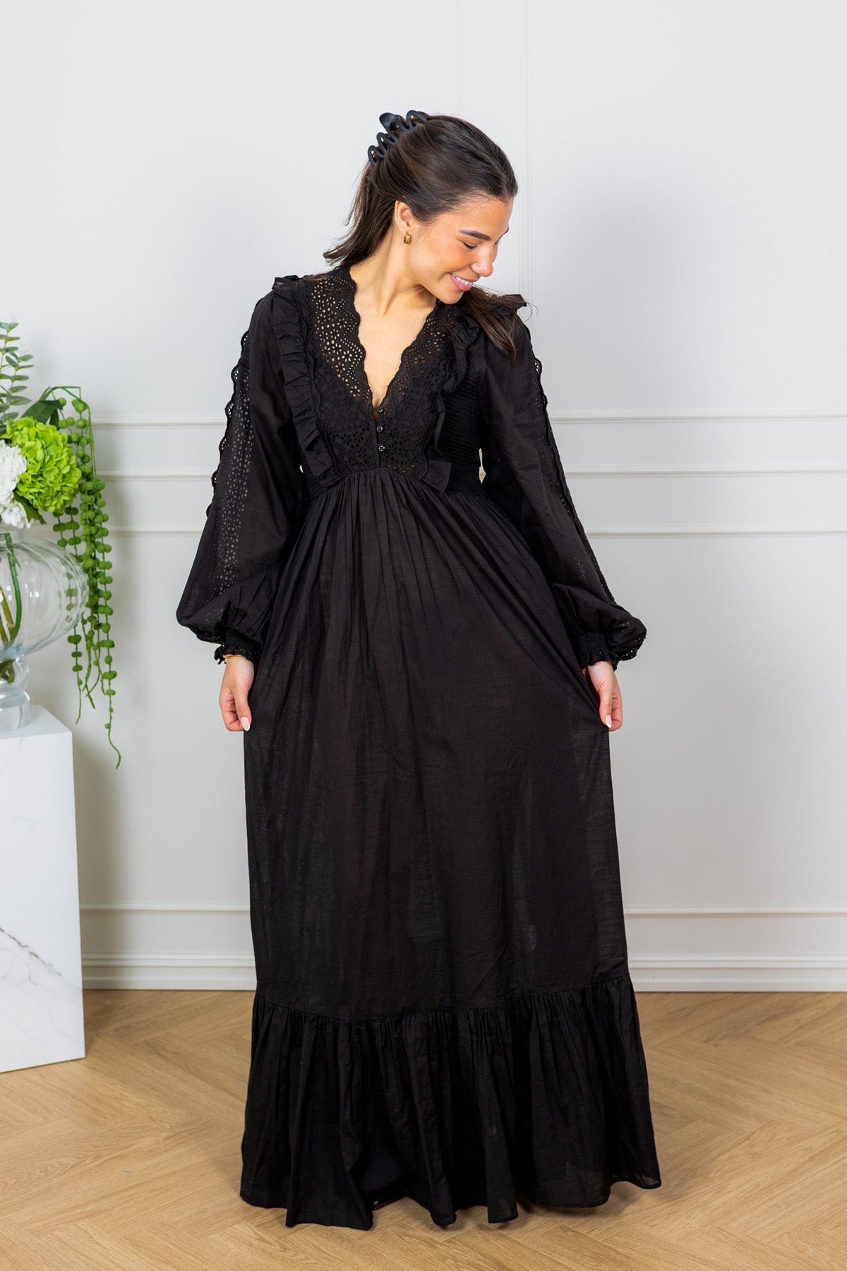 Cotton Slub Maxi Dress Black fra byTiMo er en vakker og feminin kjole som kombinerer eleganse med komfort. En kjole som føles like behagelig som den ser eksklusiv ut — perfekt for både hverdag og festlige anledninger.