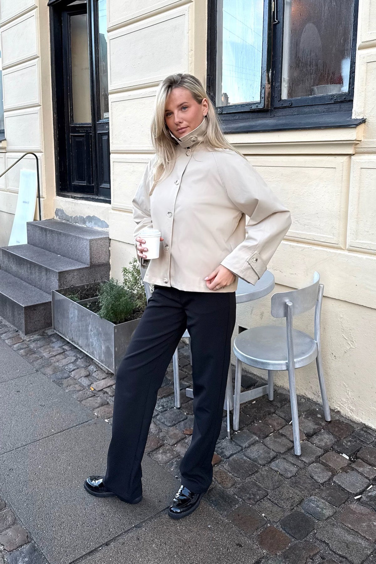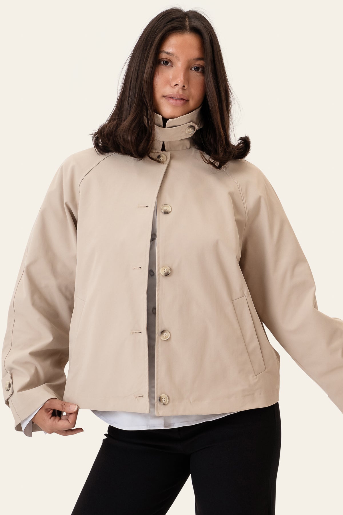 Ava Short Trenchcoat Beige fra BYIC er en elegant kort trenchcoat som kombinerer tidløst design med moderne detaljer. Med sin løse passform i både kropp og ermer, tilbyr Ava Short Trenchcoat Beige en sofistikert silhuett for enhver anledning. Jakken har en allsidig krage som kan brettes opp og kneppes for en stilig høy hals. Store naturfargede knapper og dekorative stropper på ermene gir et luksuriøst preg, mens leggdetaljer i ryggen sikrer et vakkert fall. Sammensetning: 100% polyester. Jakken har en lengde på ca. 60 cm i størrelse small og er normal i størrelsen. Vedlikeholdes med maskinvask på 30 C uten tørketrommel.