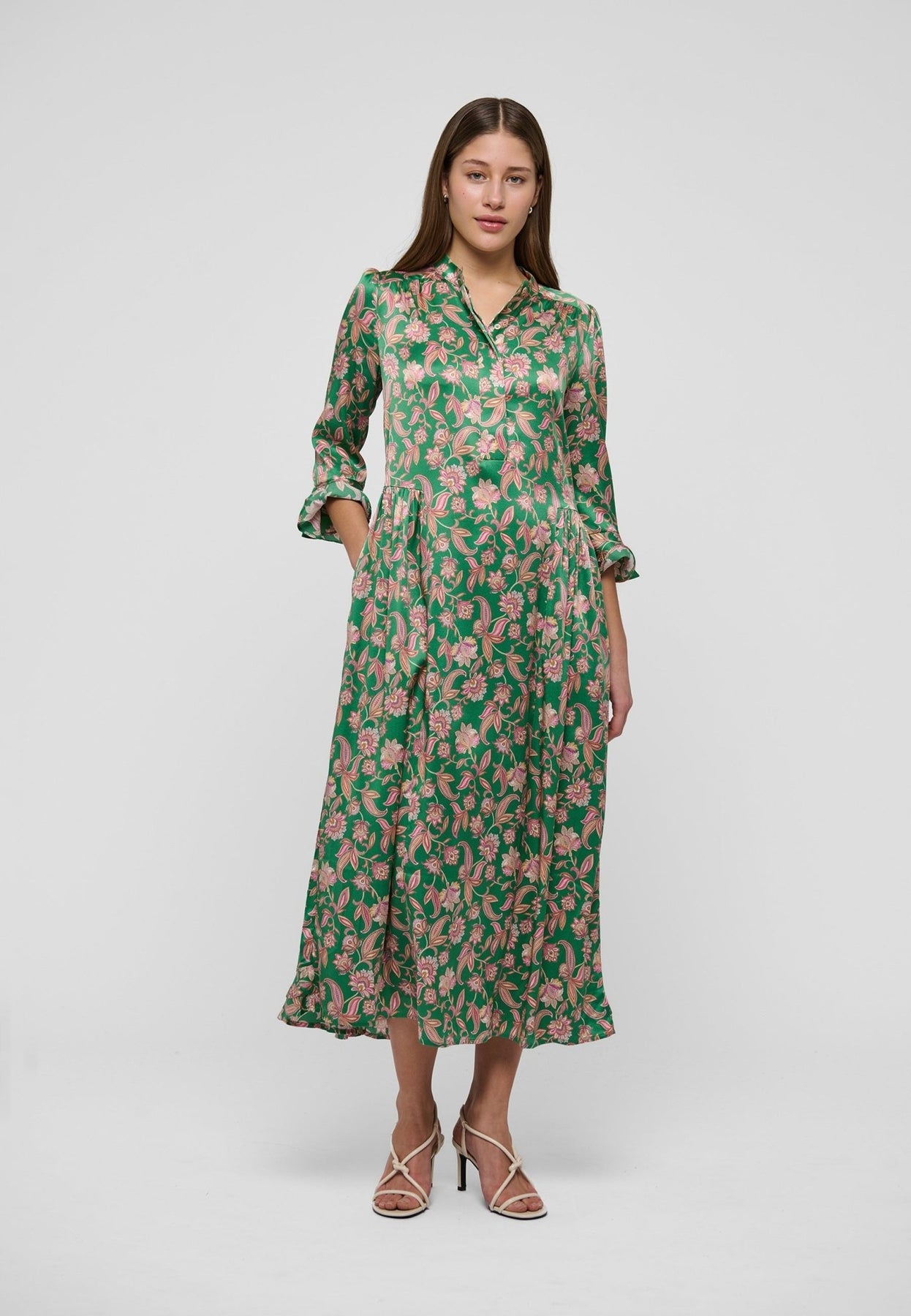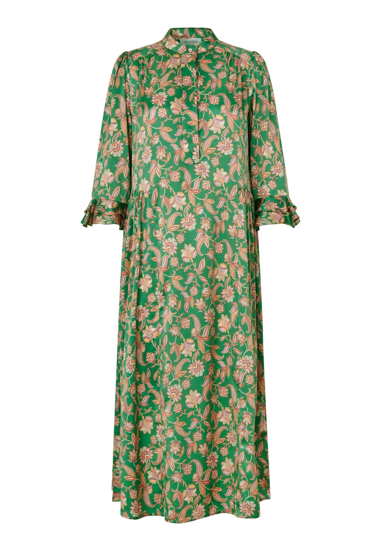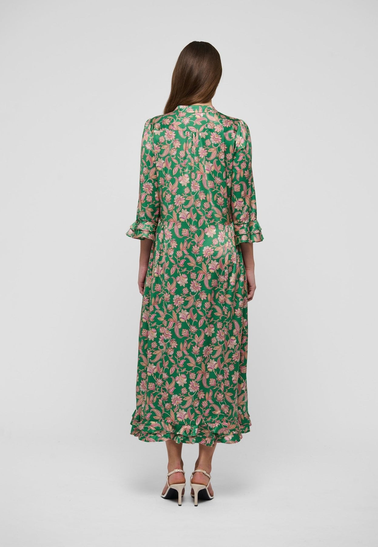 Rosannadea Dress Paisley Green fra Dea Kudibal er en nydelig og feminin silkekjole som kombinerer eleganse med et lekent uttrykk. Denne Rosannadea Dress Paisley Green har delikate ruffles som gir kjolen et sofistikert volum og bevegelse, perfekt for både formelle anledninger og hverdagsfesten. Med sin vakre passform og tidløse farge Paisley Green, komplementerer den garderoben på en unik måte. Kjolen er laget i en luksuriøs blanding av materialer som sikrer både komfort og perfekt fall. Den myke kvaliteten føles behagelig mot huden gjennom hele dagen.