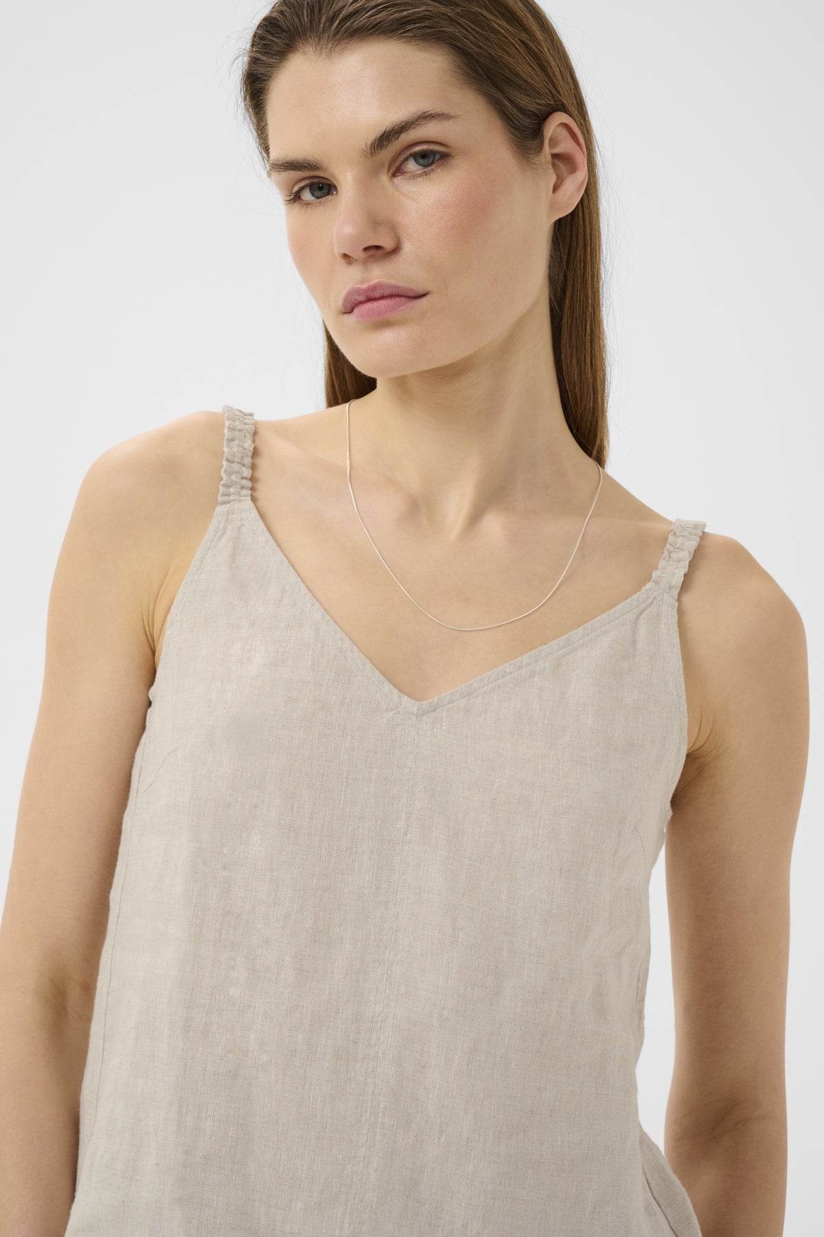 Elinoriw Top Ecru er en tidløs og elegant ermeløs bluse fra Inwear som passer perfekt til sommergarderoben. Denne Elinoriw Top Ecru kombinerer et minimalistisk snitt med høy komfort, noe som gjør den til et allsidig plagg for både hverdag og festlige anledninger. Den lette kvaliteten sørger for en pustende følelse på varme dager, mens fargen Ecru gir et sofistikert uttrykk som er enkelt å style med andre plagg. Sammensetning: 100% linen. En uunværlig bluse for den kvalitetsbevisste kvinnen som verdsetter naturlige materialer.